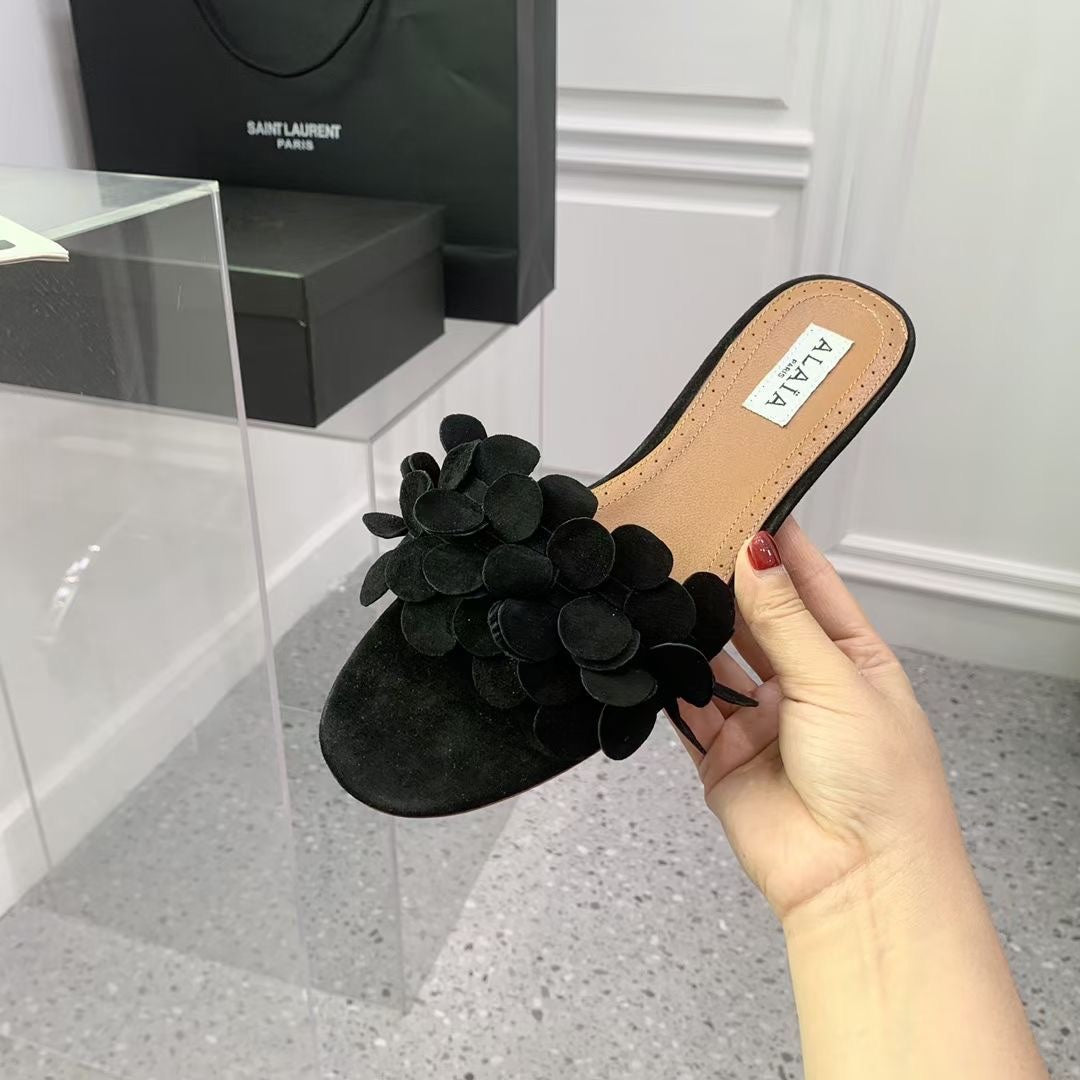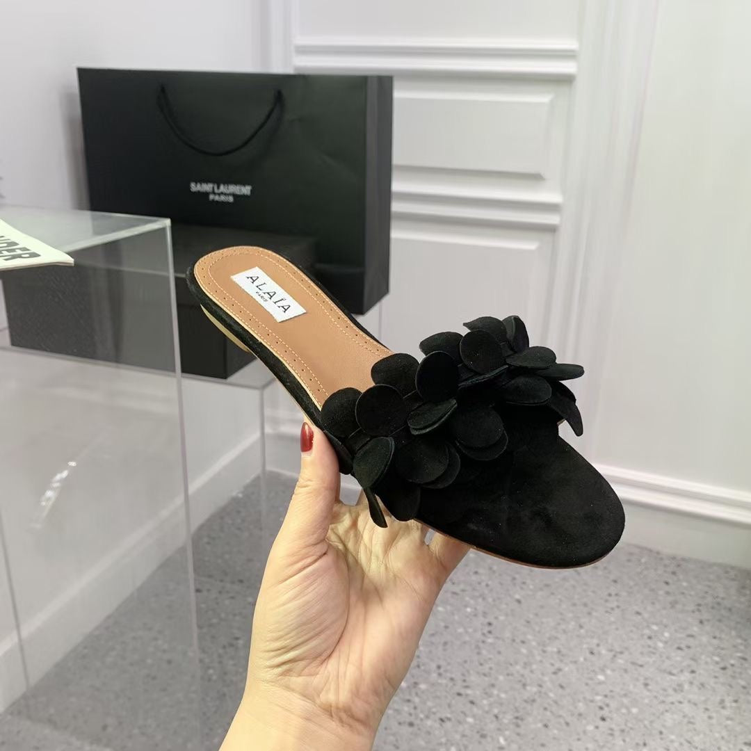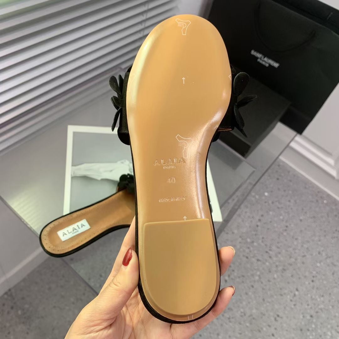 Alaia 2025 Vienne Cutout Kitten-Heel Slide Sandals Black Leather 293648