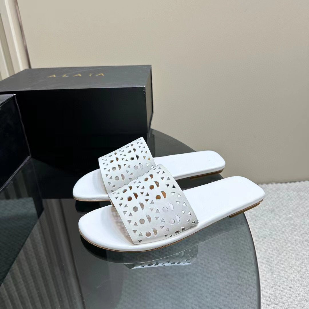 Alaia 25 Thong Sandals White Fishnet Sheepskin 315964