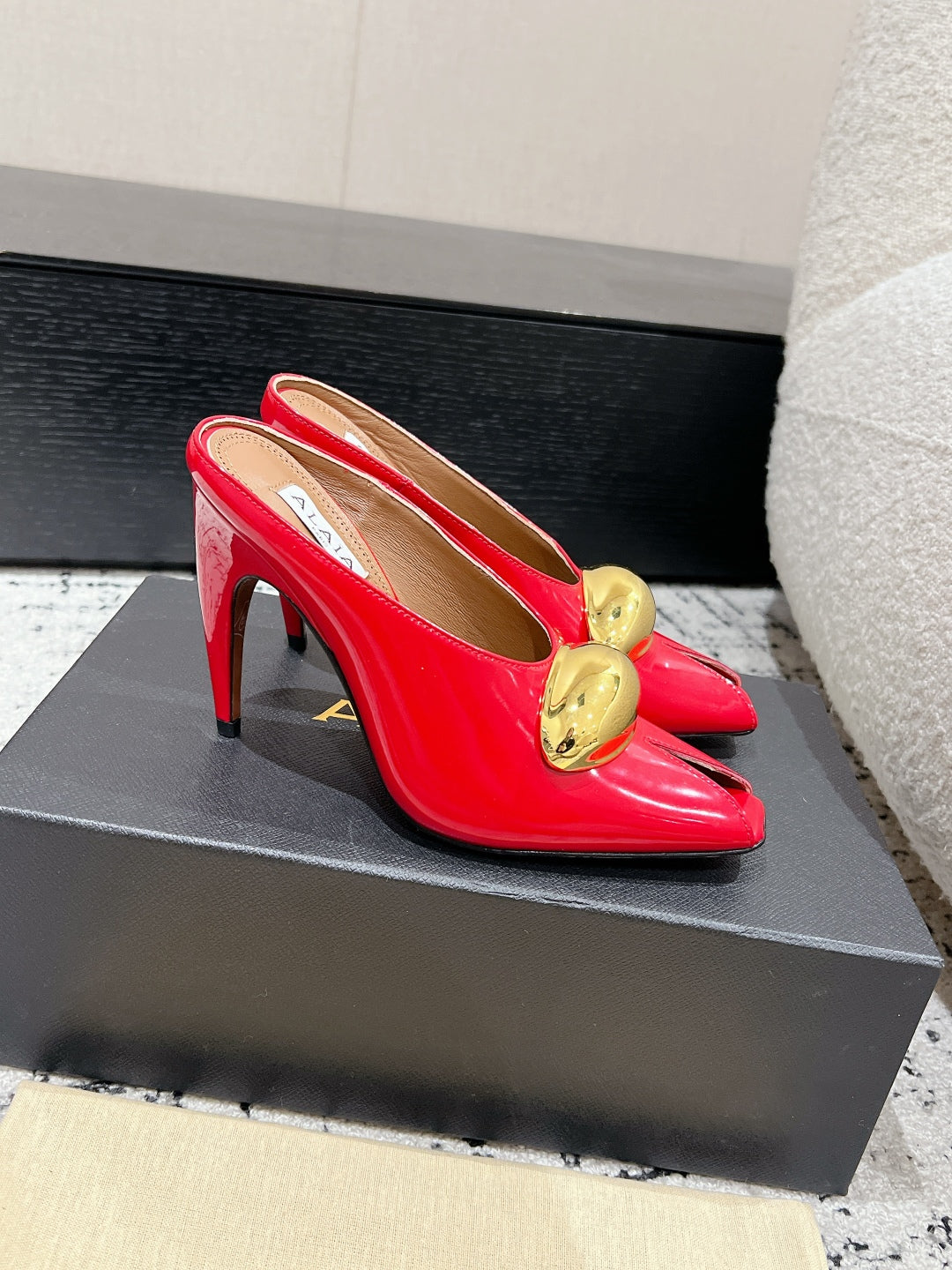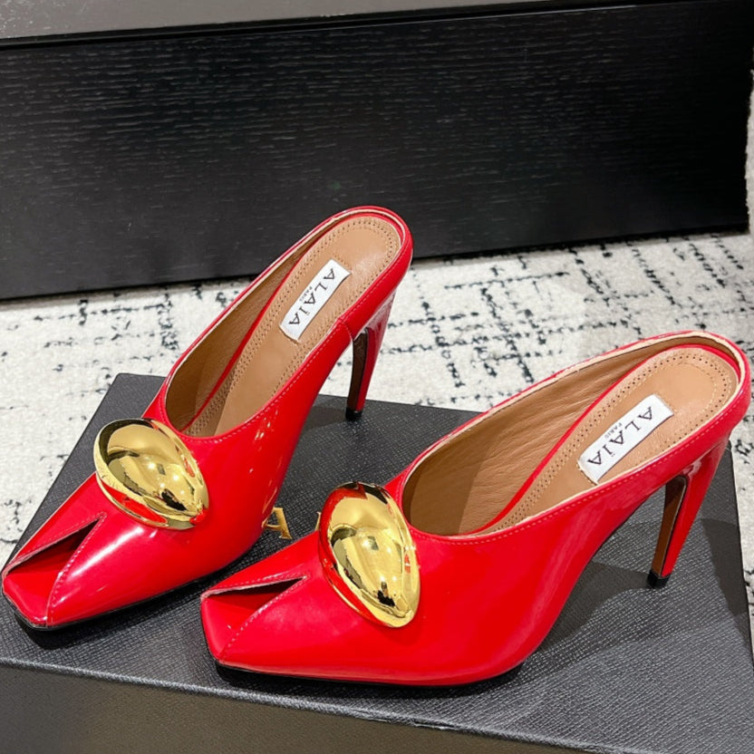 Alaia 25 Azzedine High Heels Mules With Gold Hardware Red Calfskin 293187