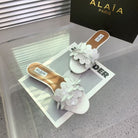 Alaia 25 Flower Slippers White Sheepskin 293161
