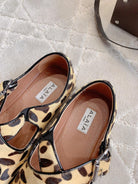 ALAIA CRISS CROSS BALLET FLAT IN LEOPARD LAMBSKIN WITH SILVER HARDWARE