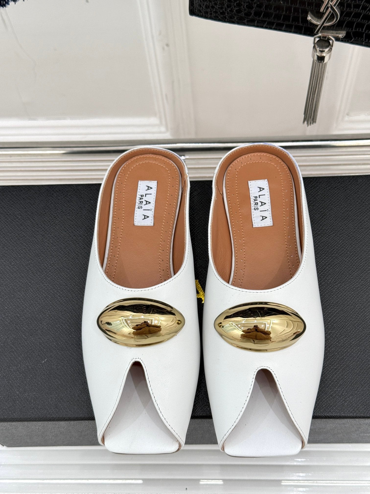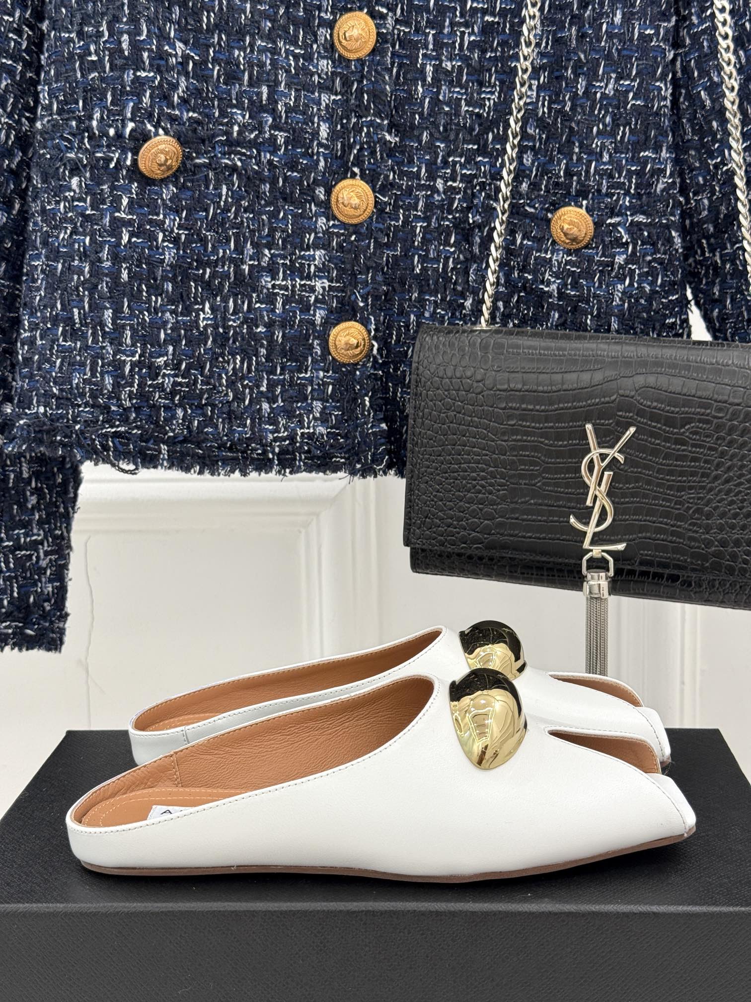 Alaia Slipper With Gold Hardware White Calfskin 293200