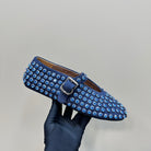 Alaia Strass Suede Ballet Flats In Dark Blue 999320