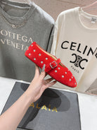 Alaila Ballet Flats In Red Velvet With Rhinestones 971994
