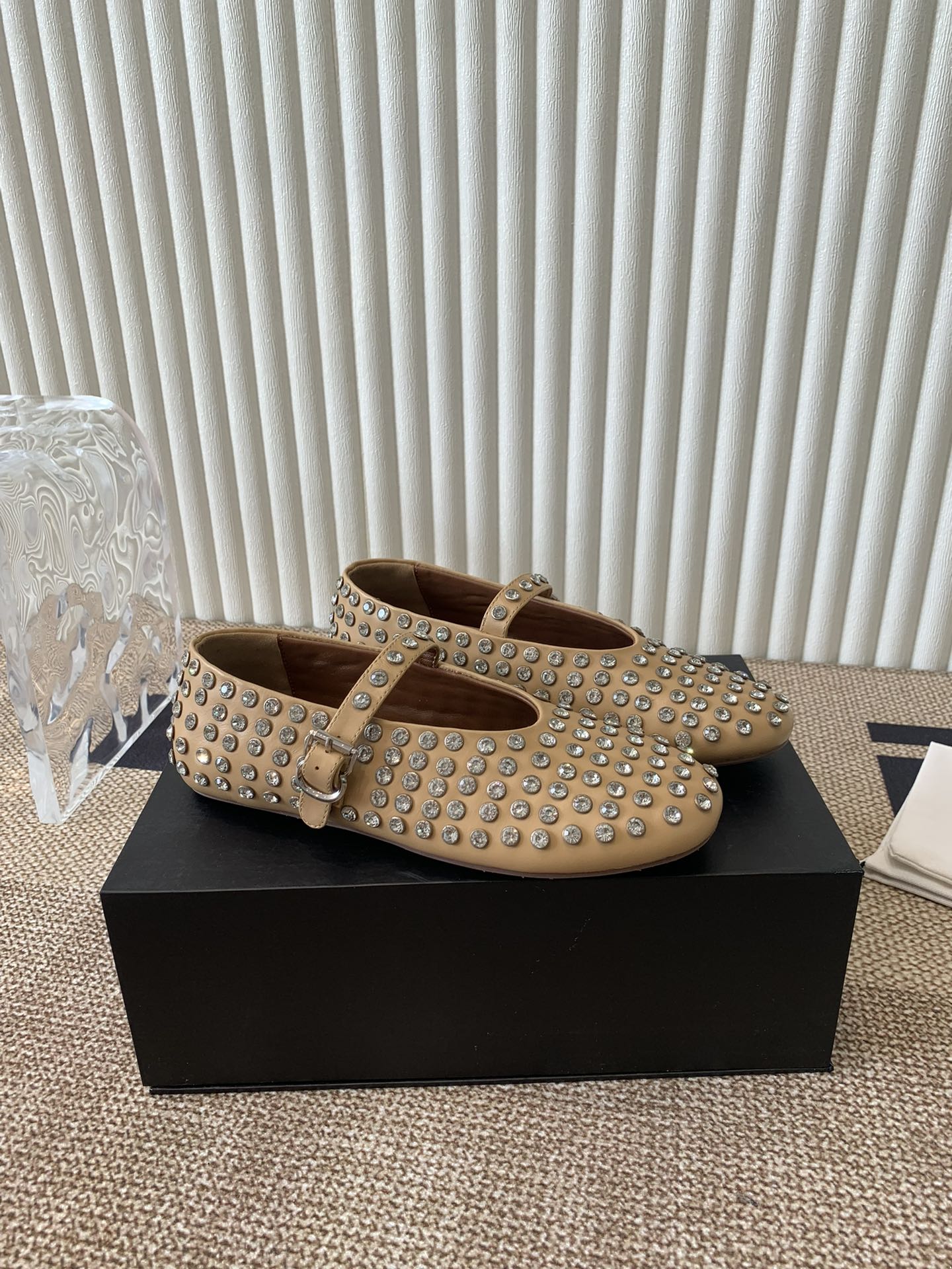 ballet flat in strass beige lambskin