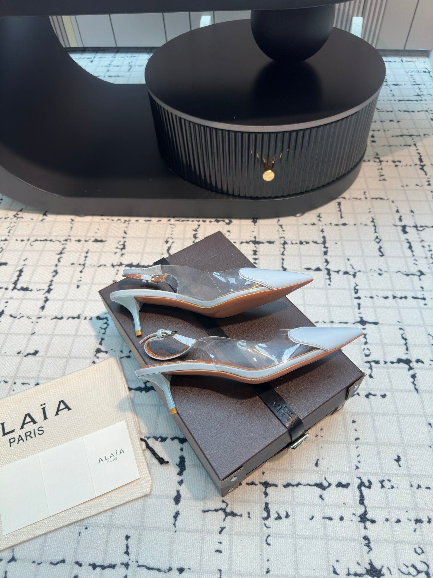 Alaia Heart 50mm Heels Slingbacks Blue Sheepskin 810208