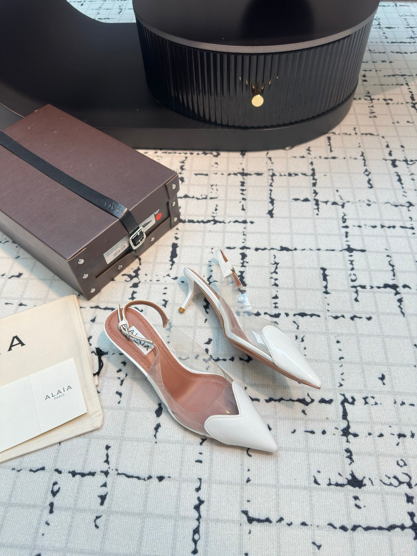 Alaia Heart 50mm Heels Slingbacks White Sheepskin 810202