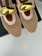 ALAIA MARY JANE SHOES IN BEIGE MESH WITH GOLD HARDWARE