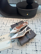 ALAIA SLINGBACKS 5 CM IN WHITE CALFSKIN WITH MESH