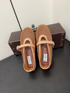 ALAIA BALLET FLATS IN COPPER BROWN MESH FISHNET