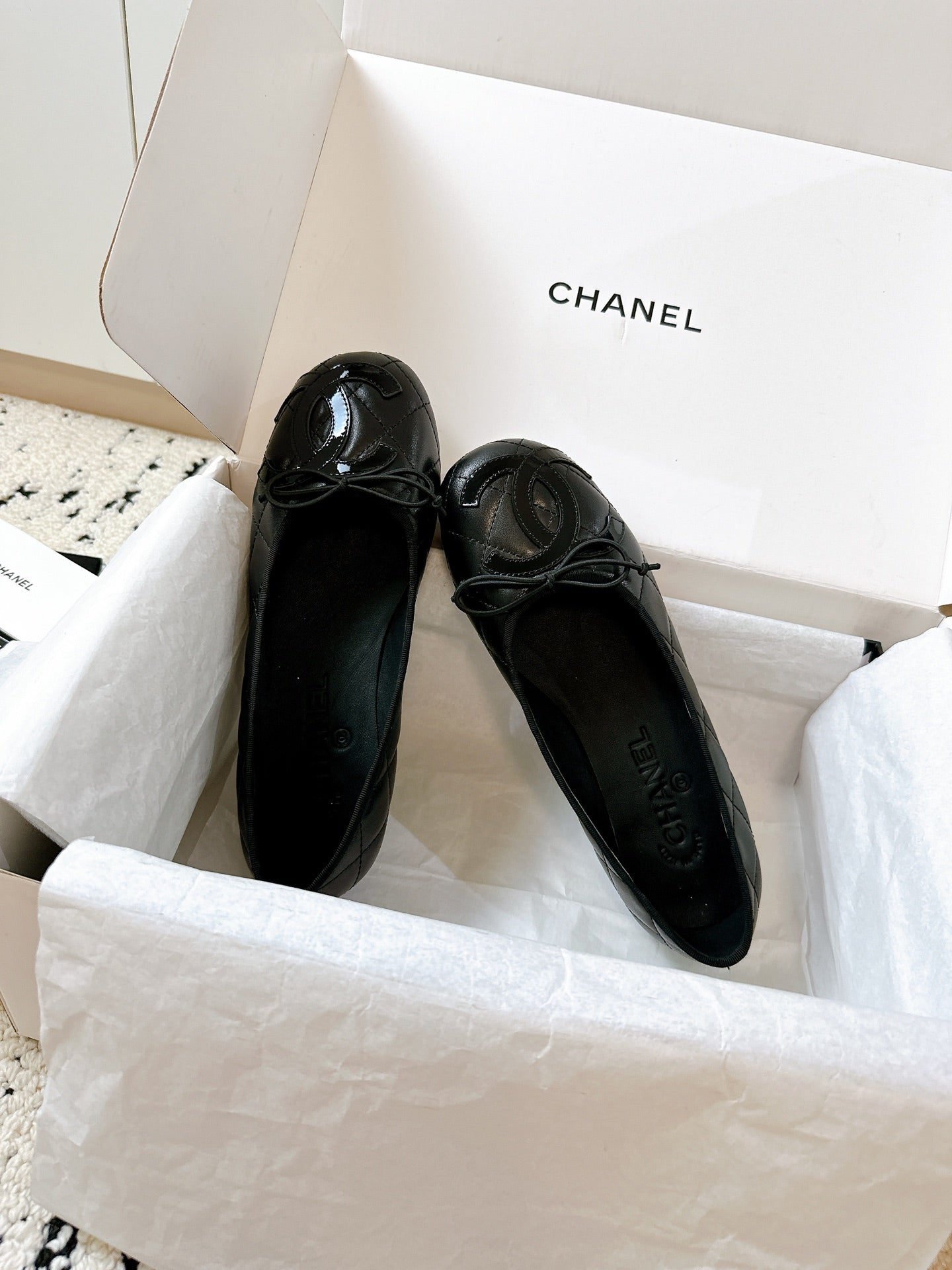CC 25 Kangpeng Ballet Flats Black Leather 300172