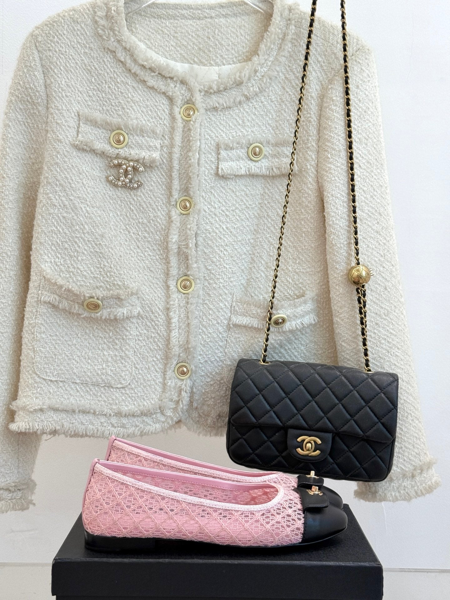 Chanel 25 Ballet Flat Pink Black Woven Lambskin 473054