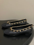 Chanel 25A Ballet Flats Big Chain Double C Black Sheepskin 393820
