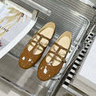 FLAT SANDALS WITH DOUBLE STRAP-DESIGN LEATHER CARAMEL BROWN