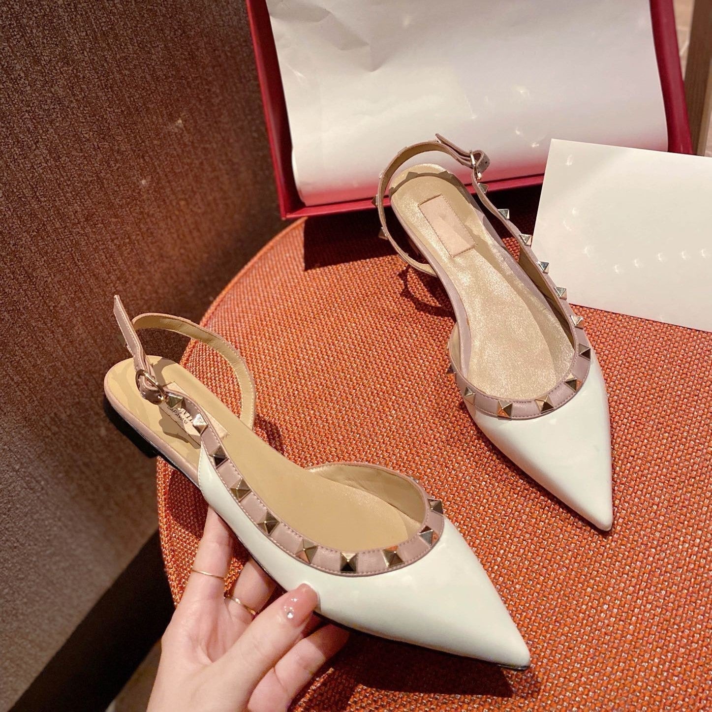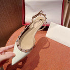 Rockstud Slingback Ballerina Flats White Leather