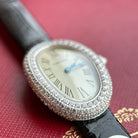 Baignoire 23mm Silver Case Diamond Bezel Black Leather Strap
