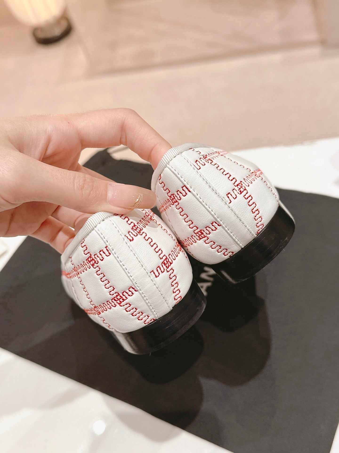 ballet flats white red lambskin embroidery grosgrain
