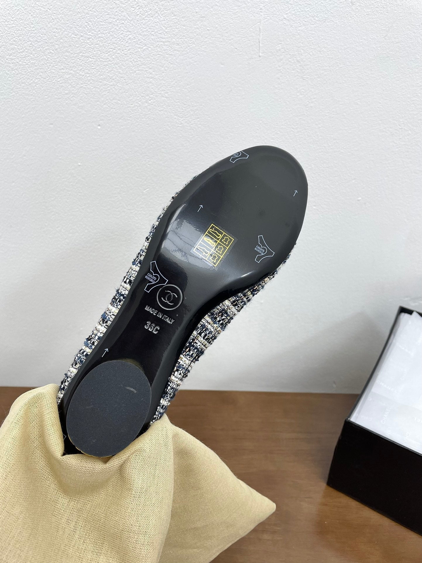 - Material: Tweed Farbic And Cowhide