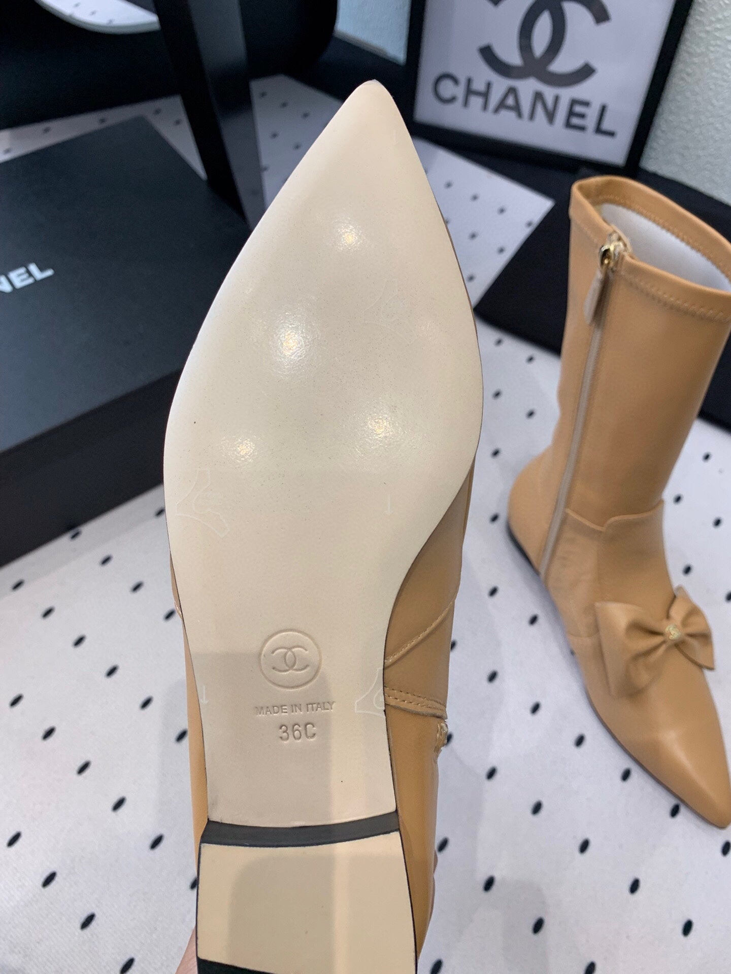 CC 25 Bow-knot Short Boot Camel Sheepskin 514065