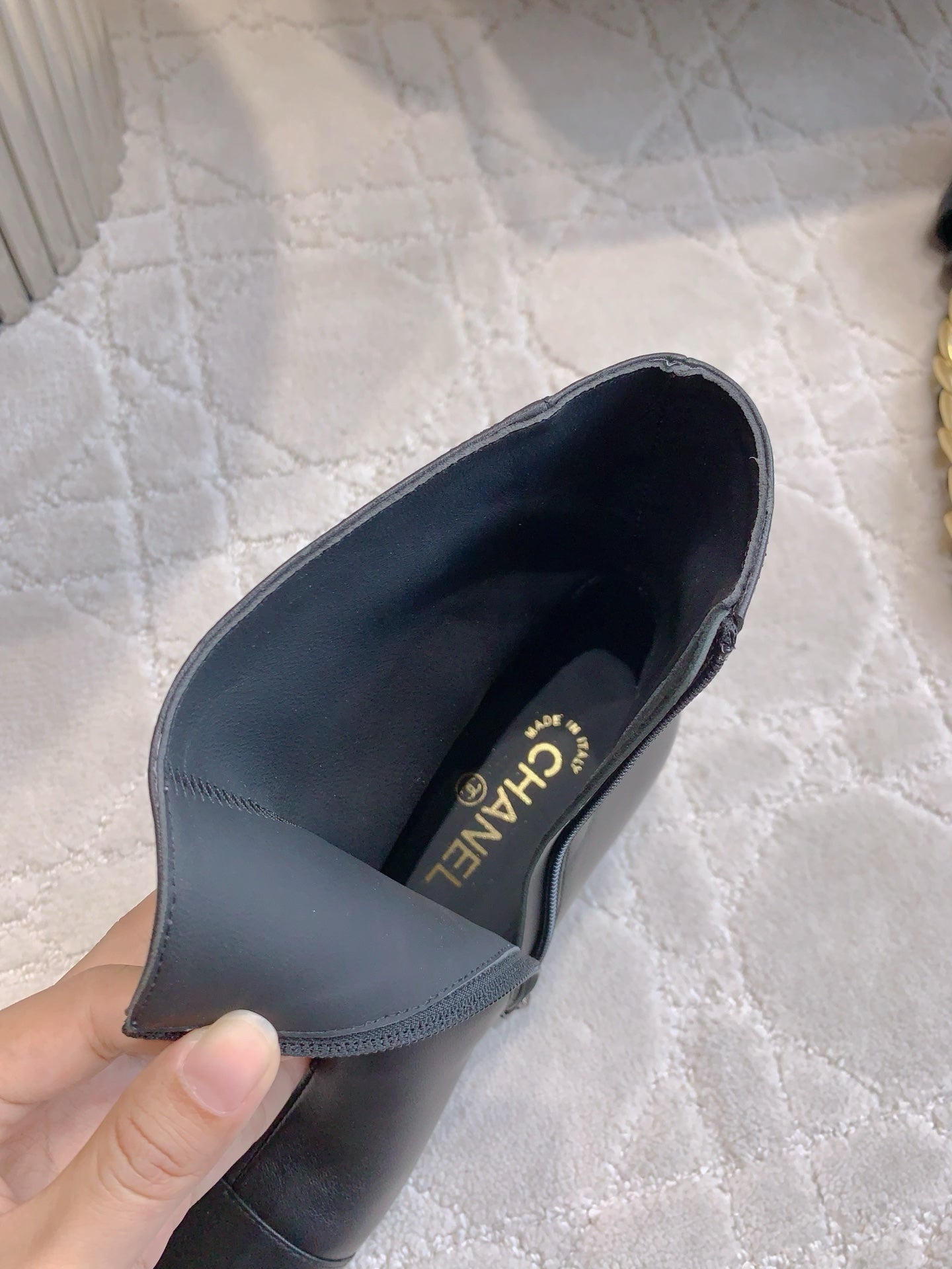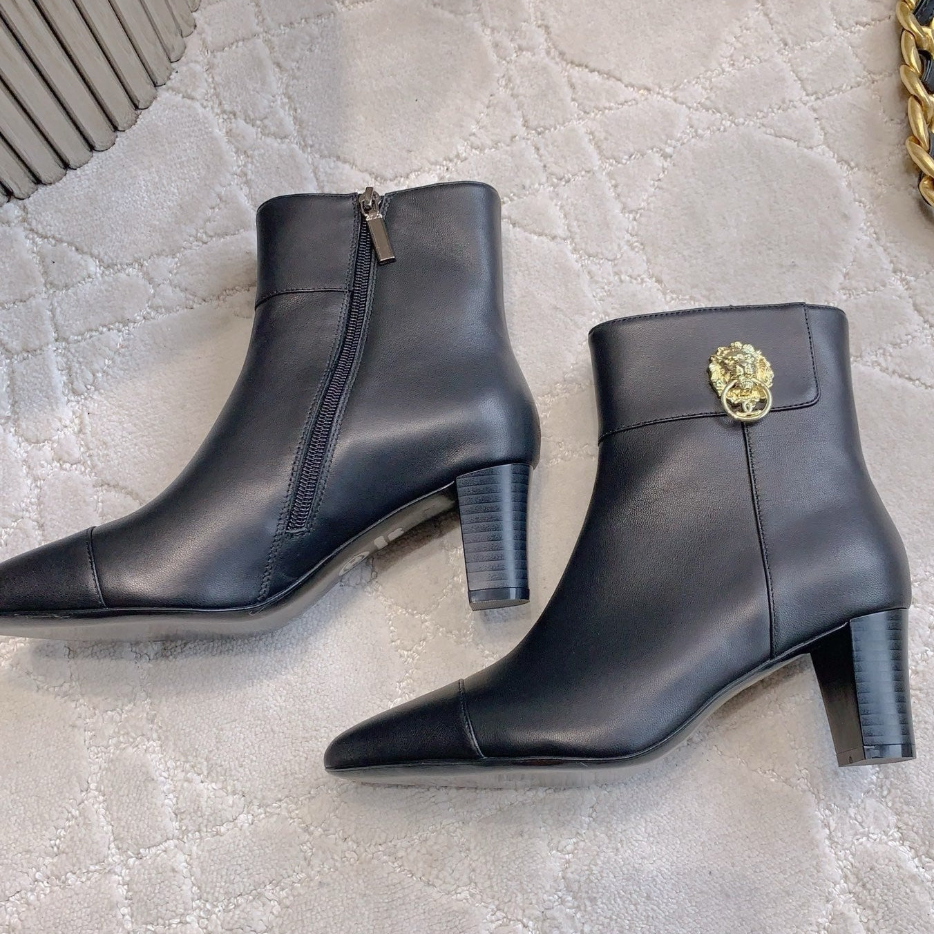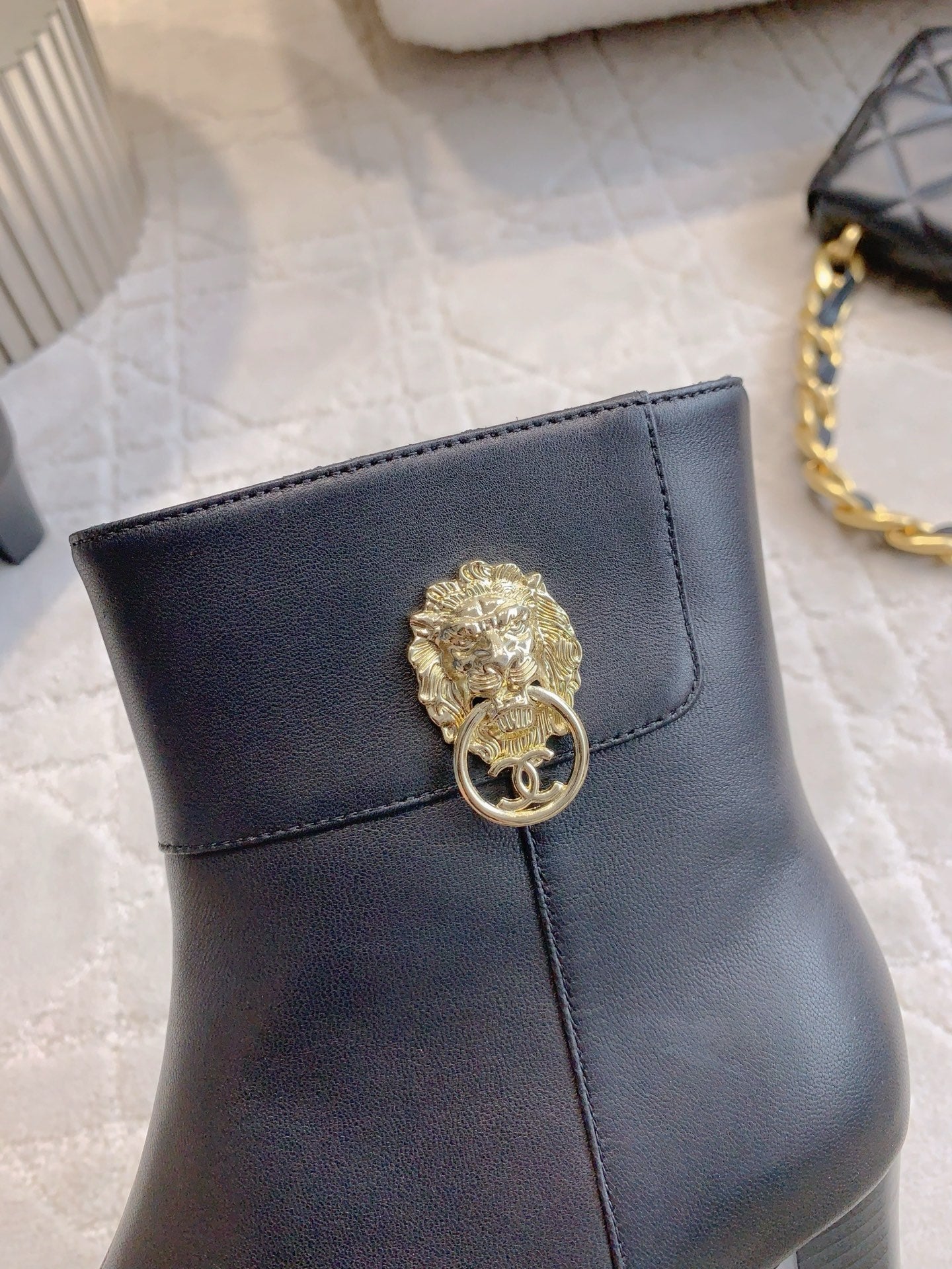 CC 25 Chunky High-heeled Ankle Boots Black Gold Calfskin 516660