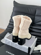 CC 25 new sock boots white black knit wool suede 458777