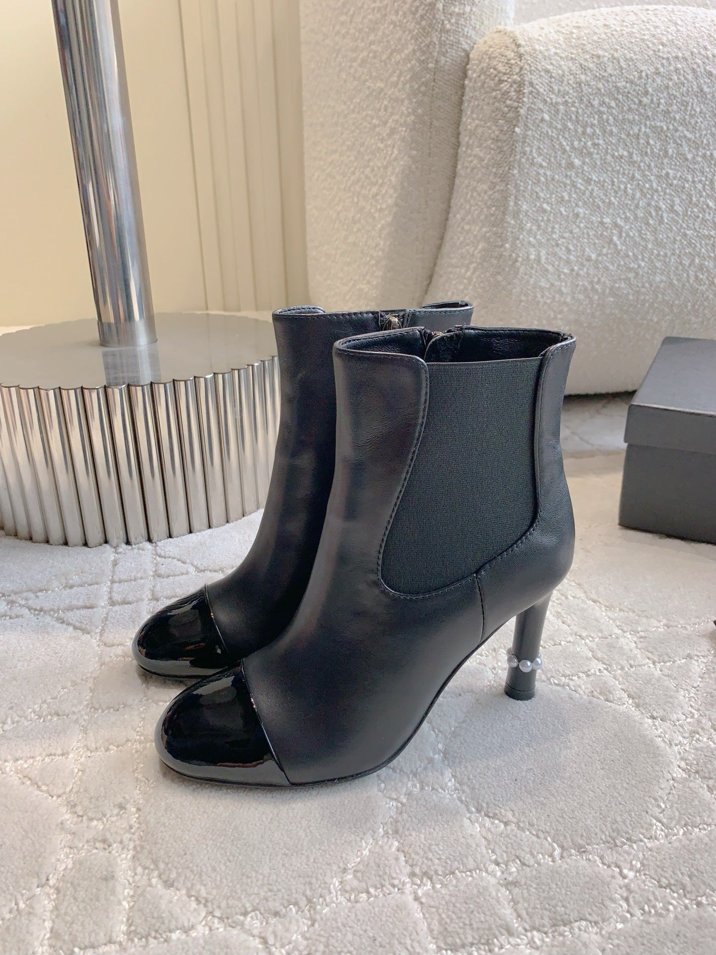 CC 25 Pearl Heel Boot Black Calfskin 516653