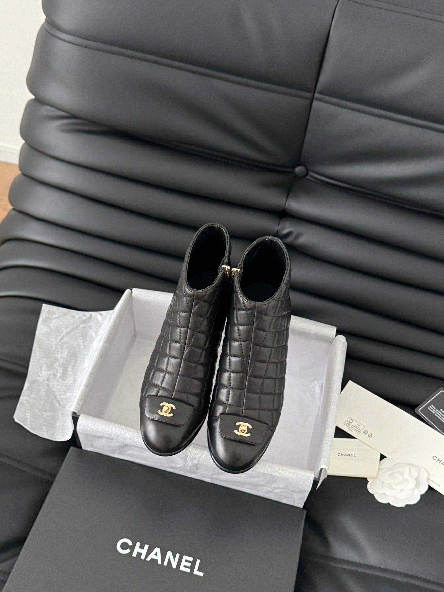 CC SHORT BOOTS 65 MM IN BLACK QUILTED PATTERN LAMBSKIN