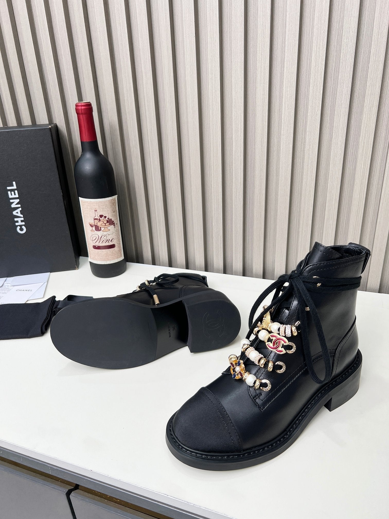 CC Combat Boots 50mm Black Calfskin And Lycra Fabric 944548