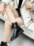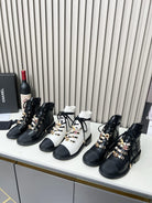 CC Combat Boots 50mm Black Glossy Calfskin And Lycra Fabric 944549