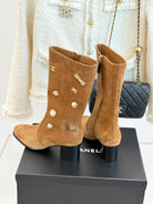 CC High Heel Boots Brown Suede Mix Charm 512037