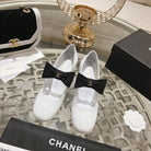 CC High Mary Janes 55mm White With Black Bow Glossy Calfskin 943288