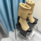 CC Short Boots 80mm Beige Wool Fabric And Lambskin