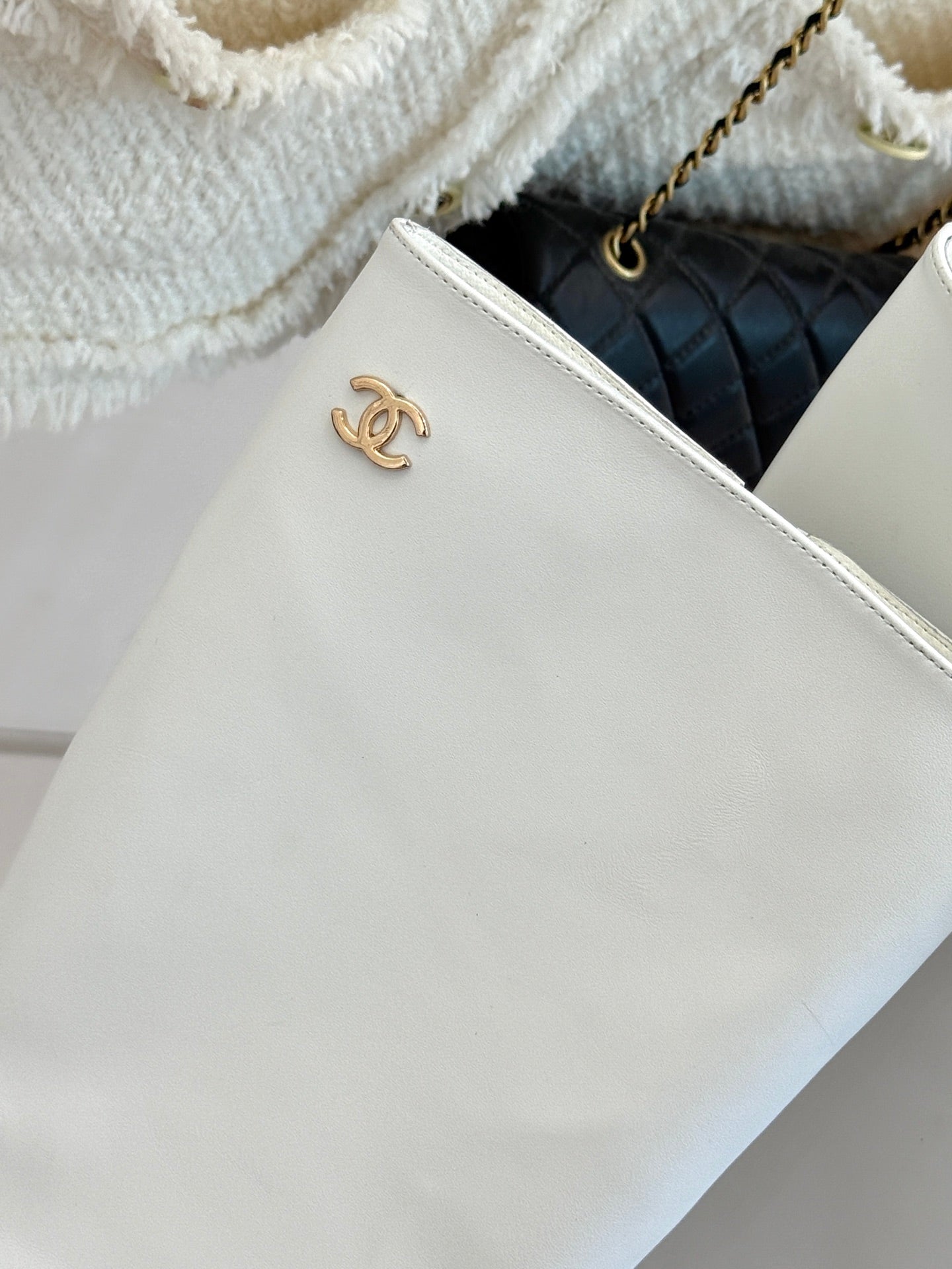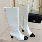 Chanel Double C Colorblock Heel Long Boot Black Sheepskin 465417