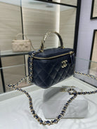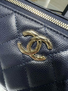 CC 25S Small Vanity 17cm Dark Blue Grained Calfskin Light Gold Hardware