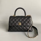 coco handle flap bag 23cm black quilted caviar light gold hardware