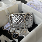 FLAP BAG MINI 20CM SILVER METALIC CALFSKIN