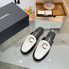 CC 25 Mule Black White Calfskin Large Double C Logo