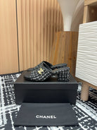 CC Mule 60mm In Black Mix White Wool Tweed And Lambskin