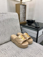 mule sandal 95 beige quilted waxed leather