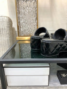 mule sandal 95 black quilted waxed leather