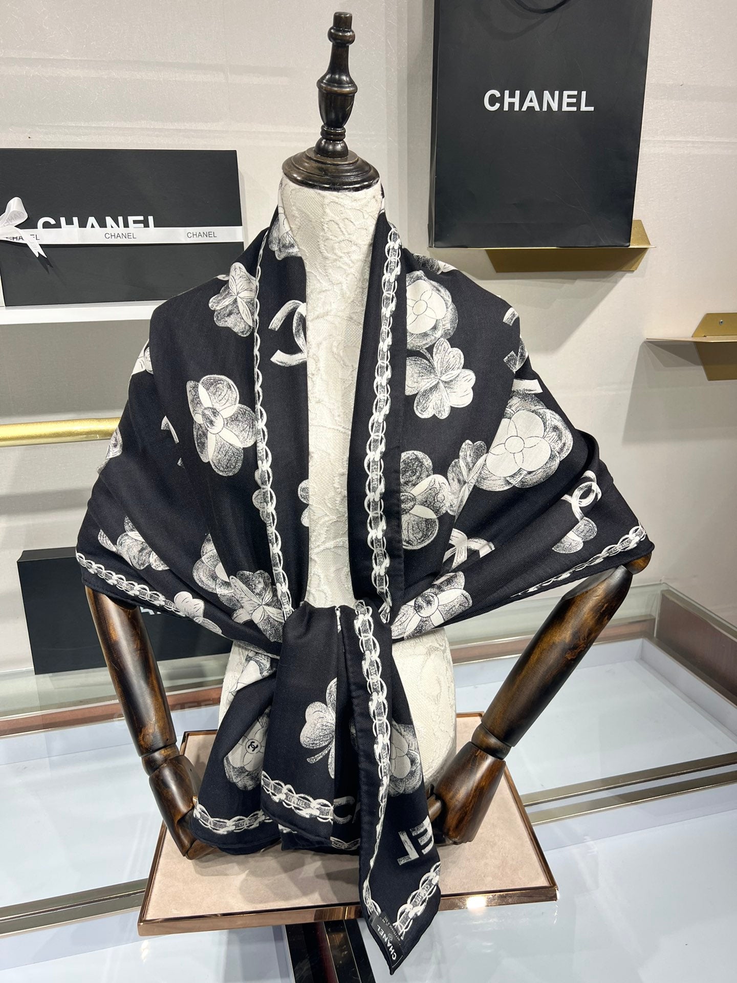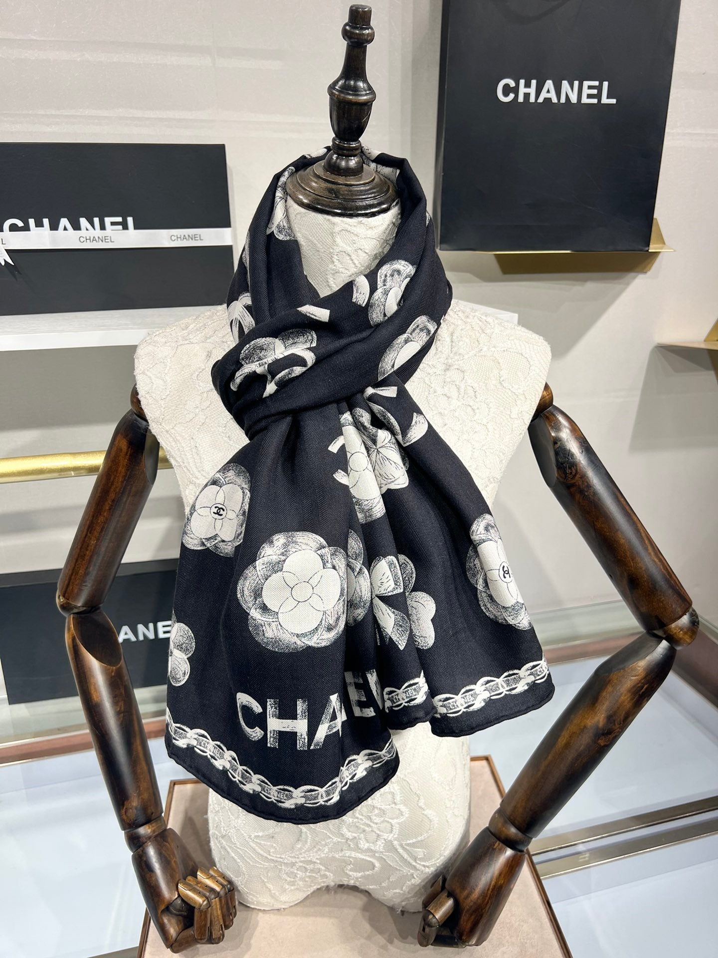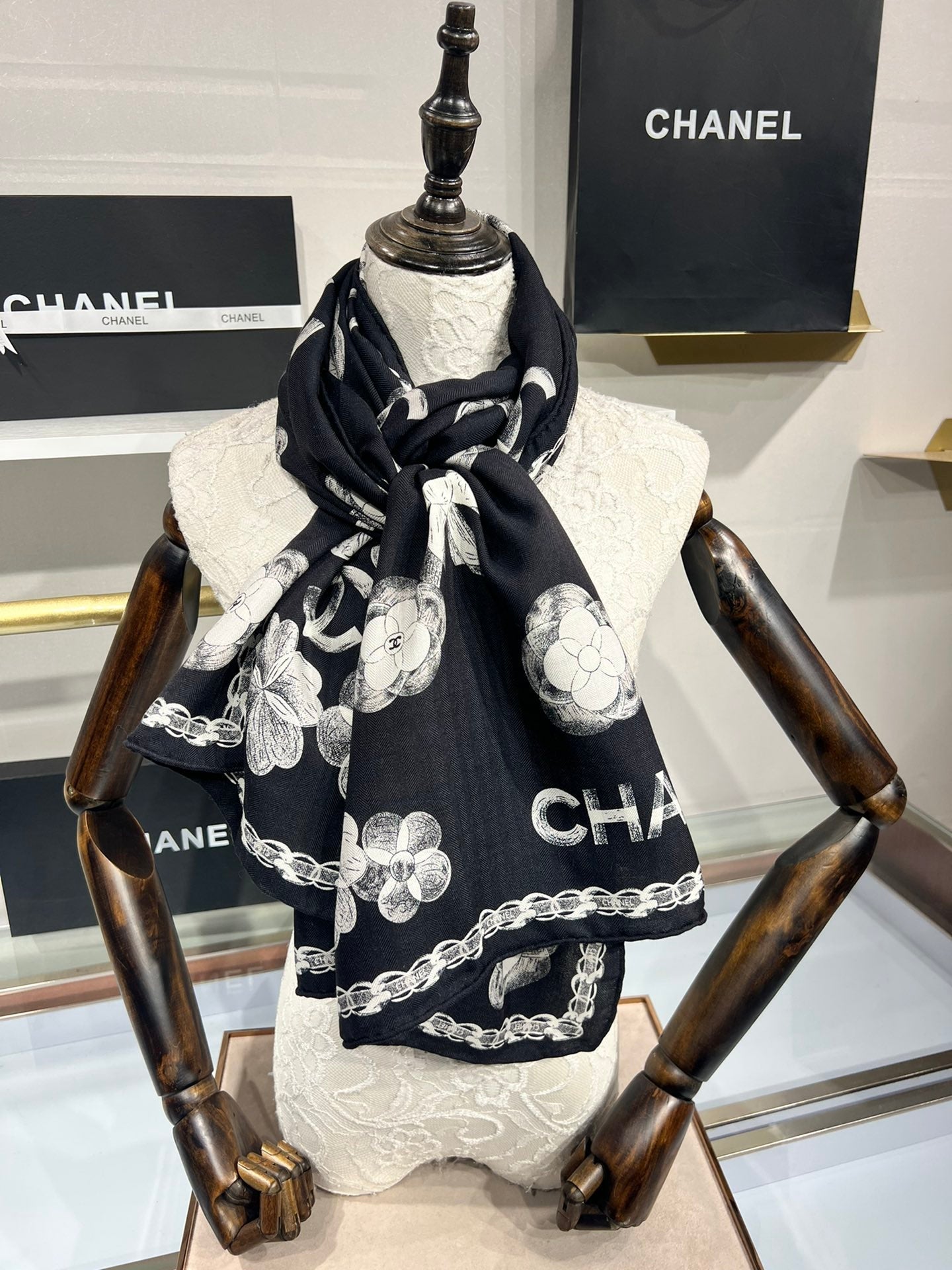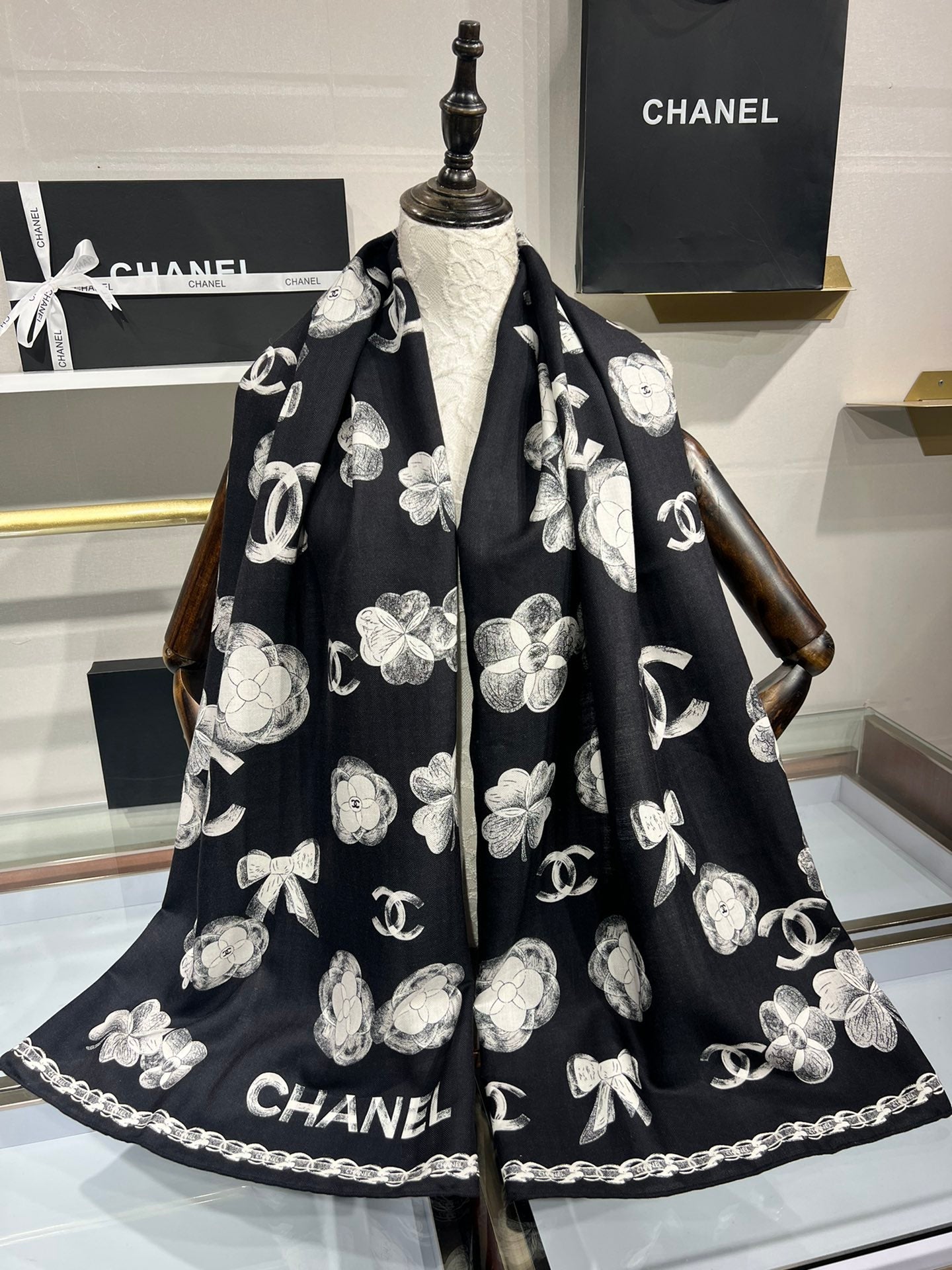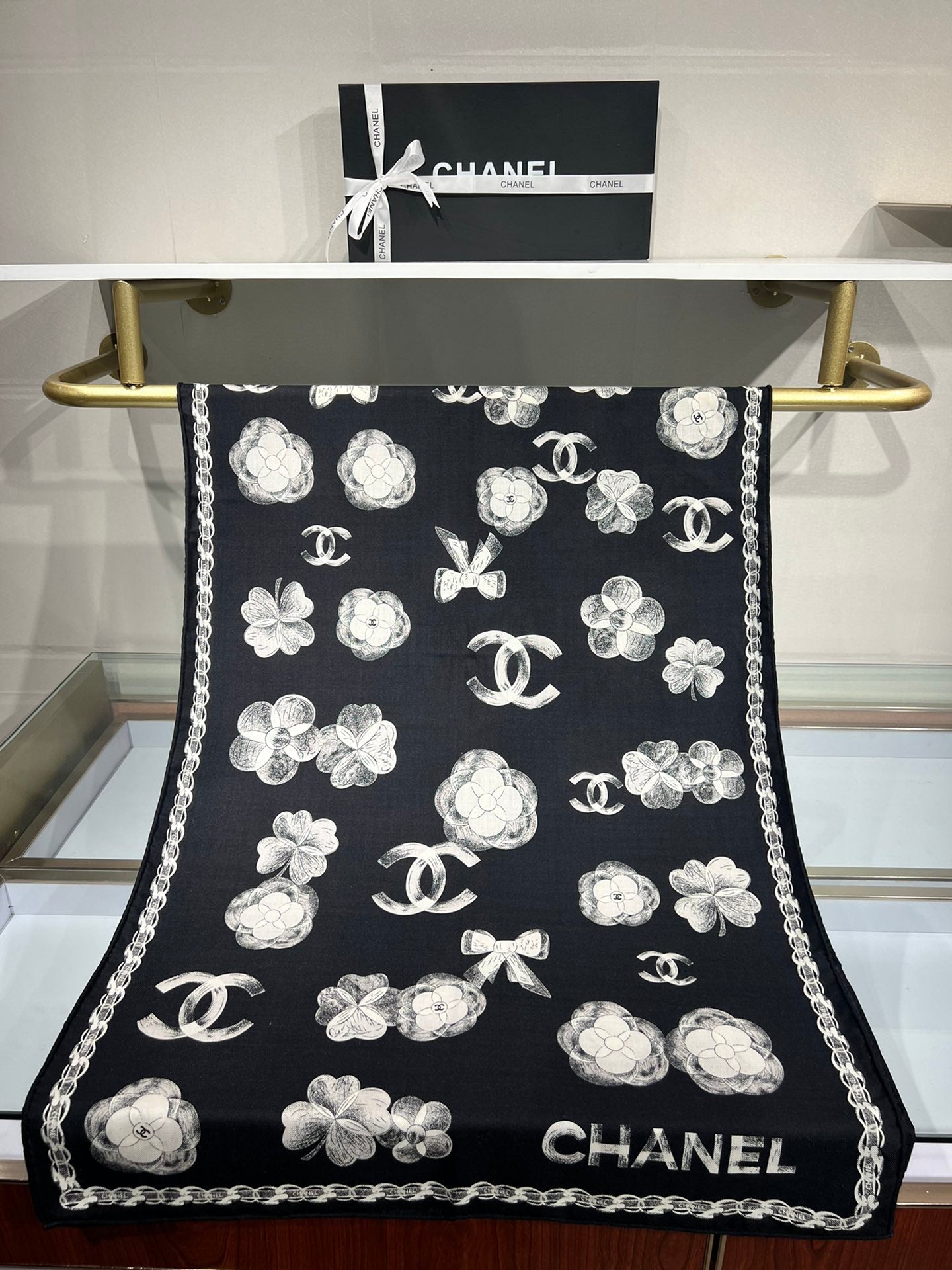 CC Scarf 185 CM In Black White Cashmere Silk 413590
