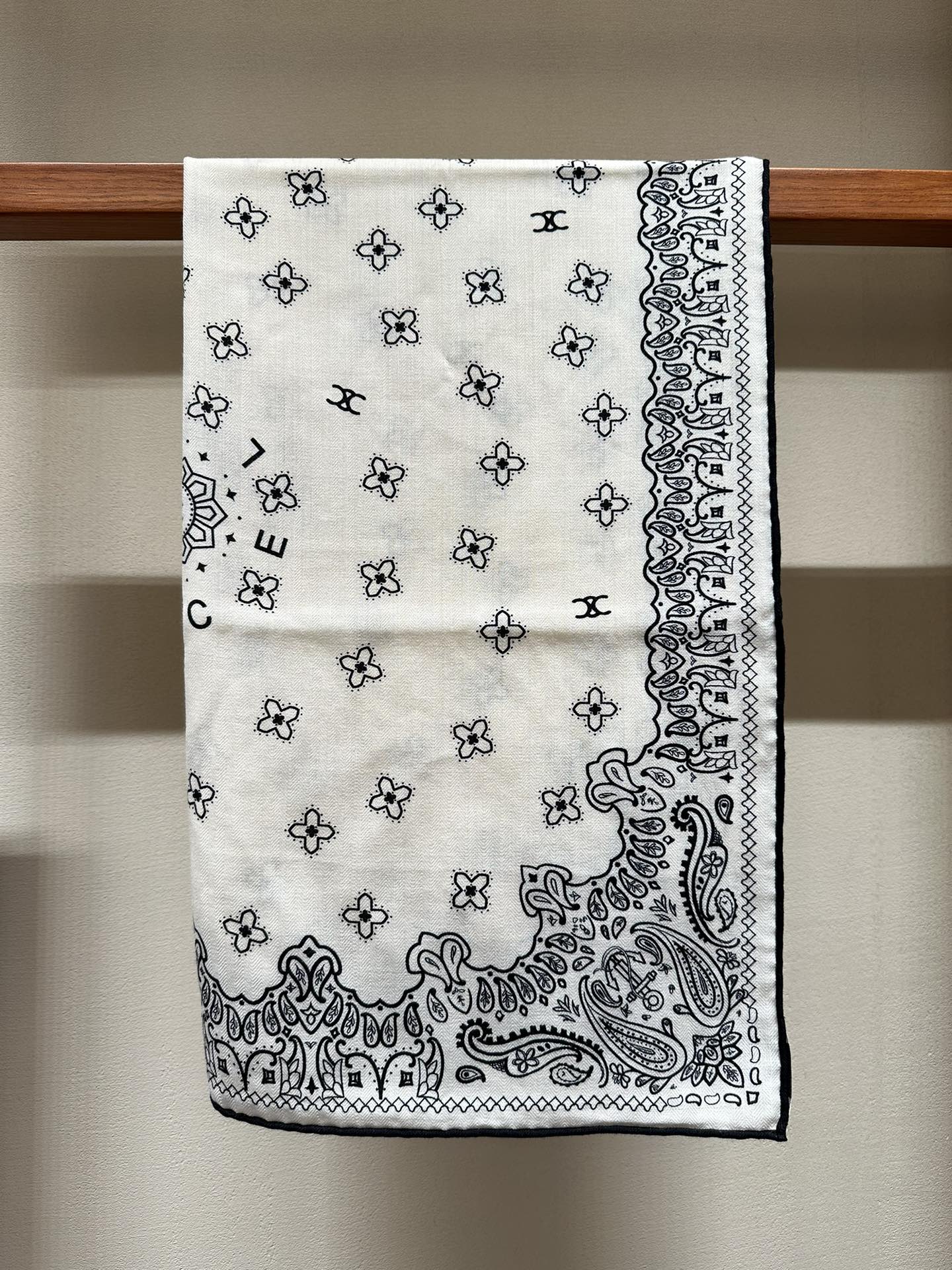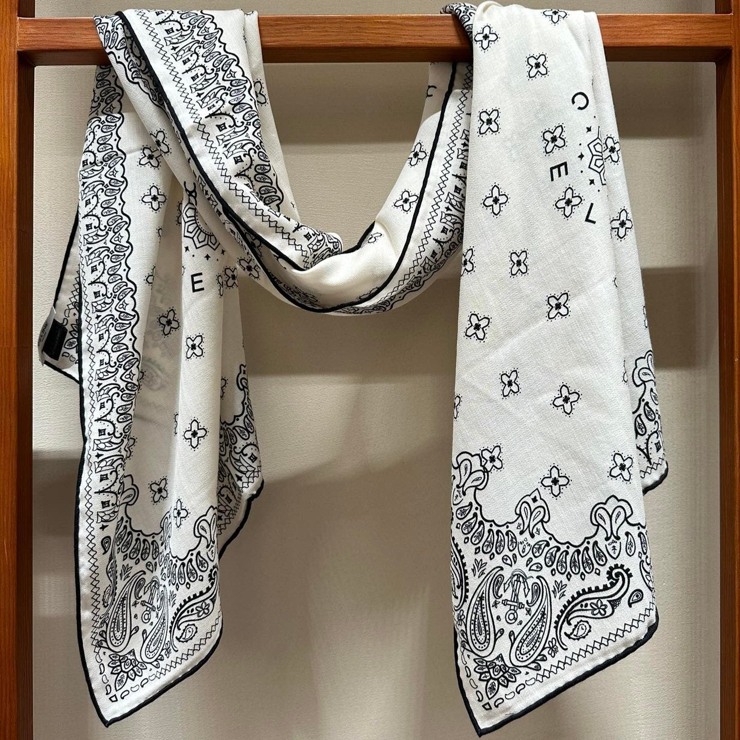 CC Scarf 185 CM In White Black Cashmere Silk 371904