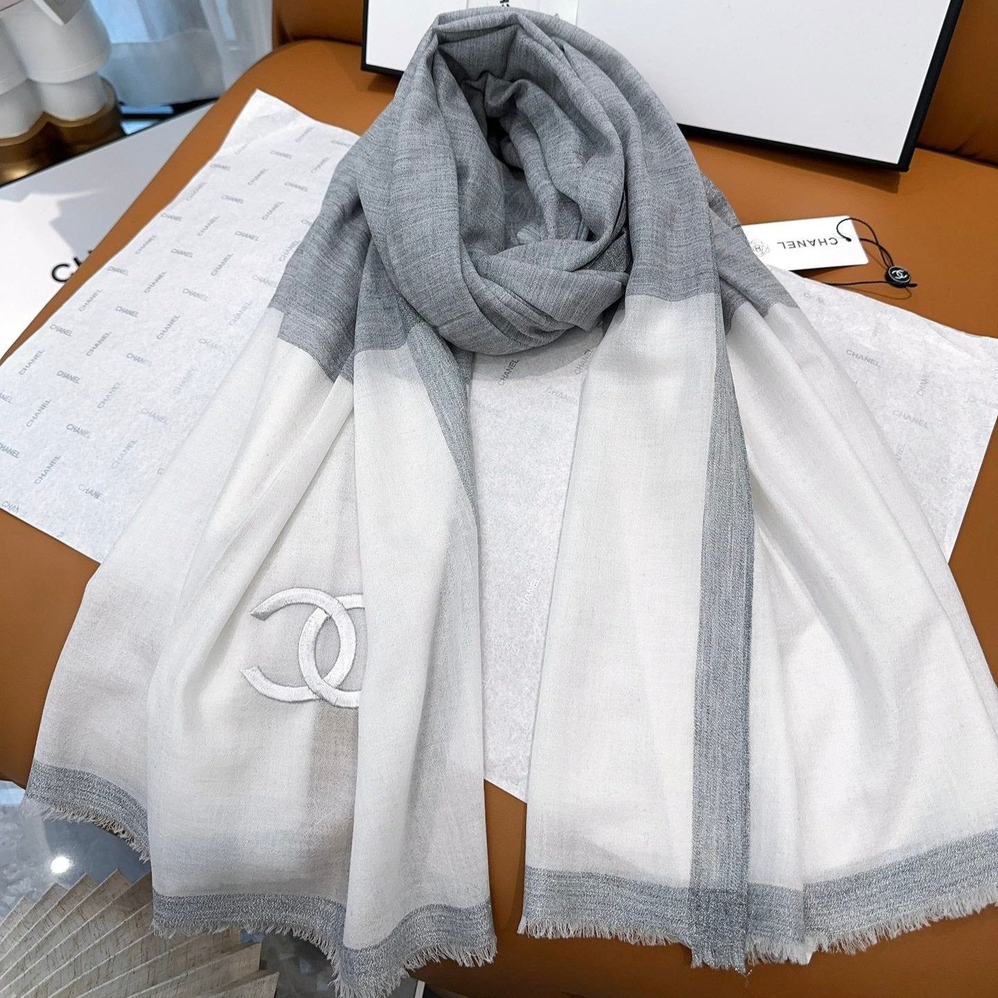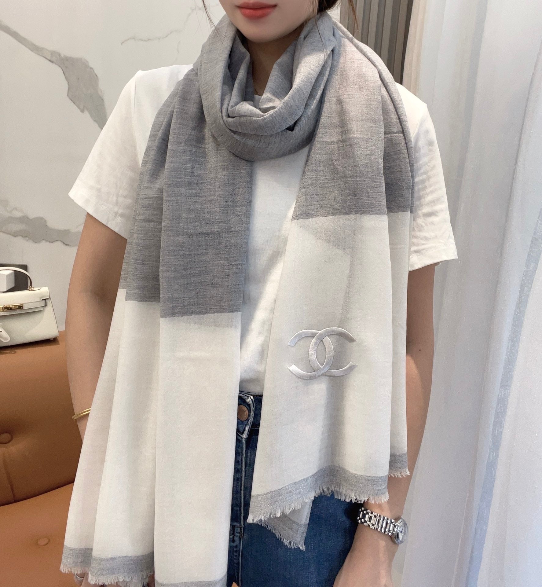 CC Scarf 200 CM In Light Grey Mix White Cashmere Silk 385379