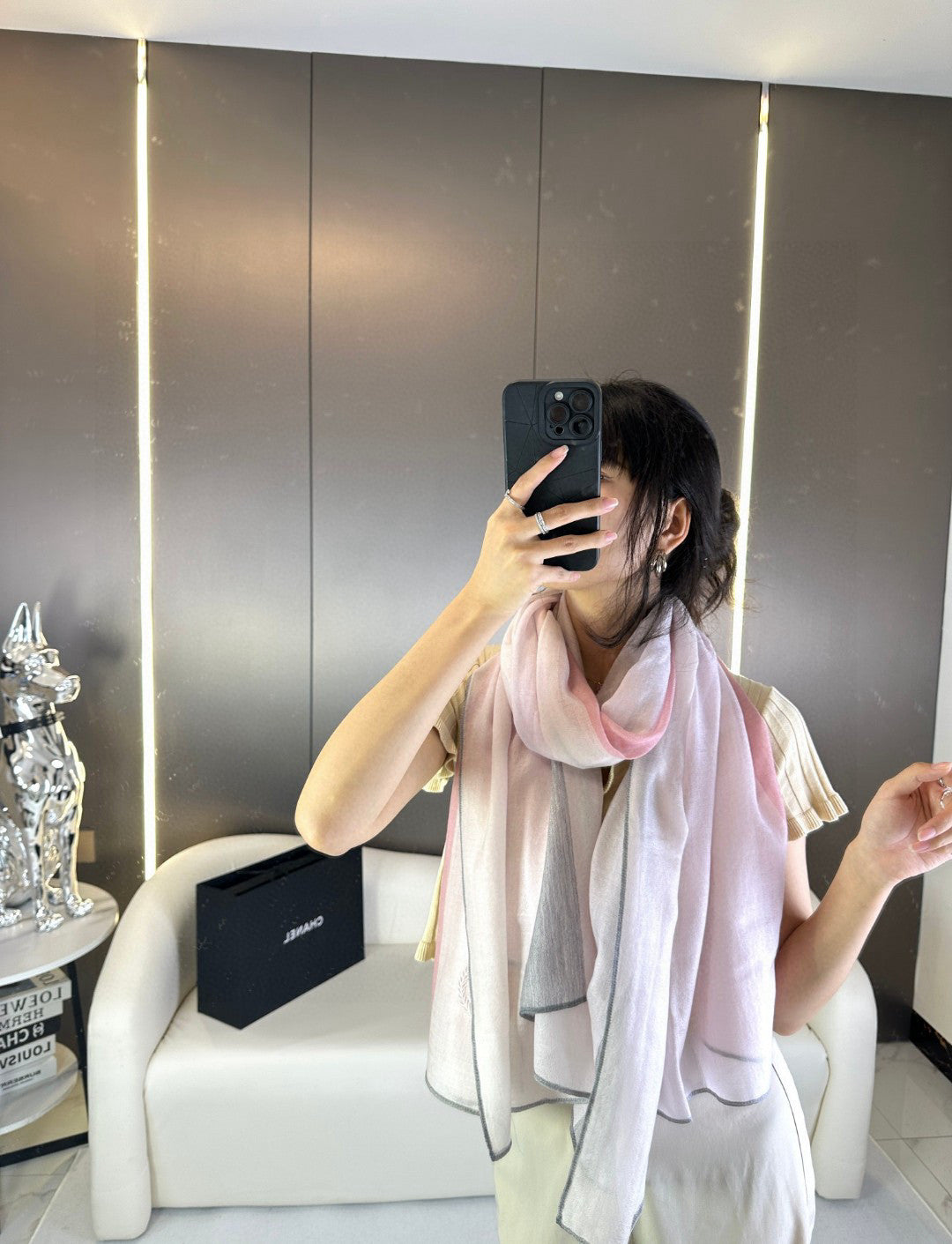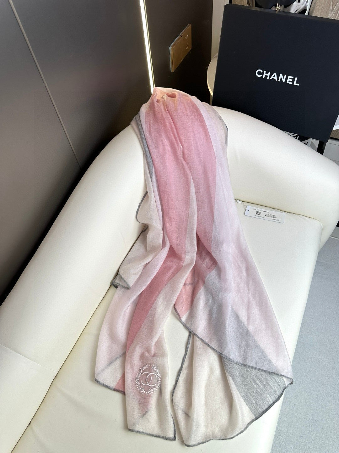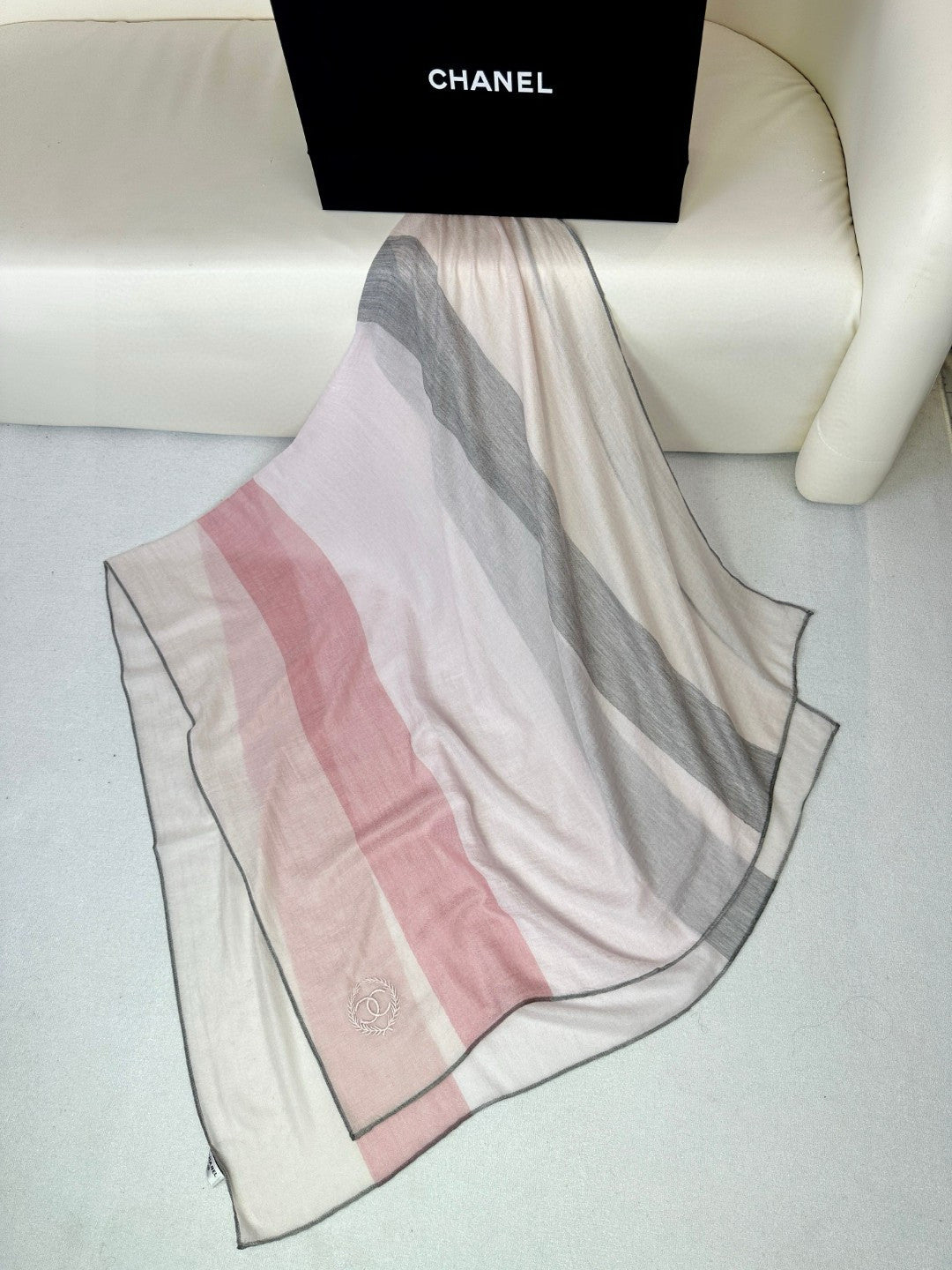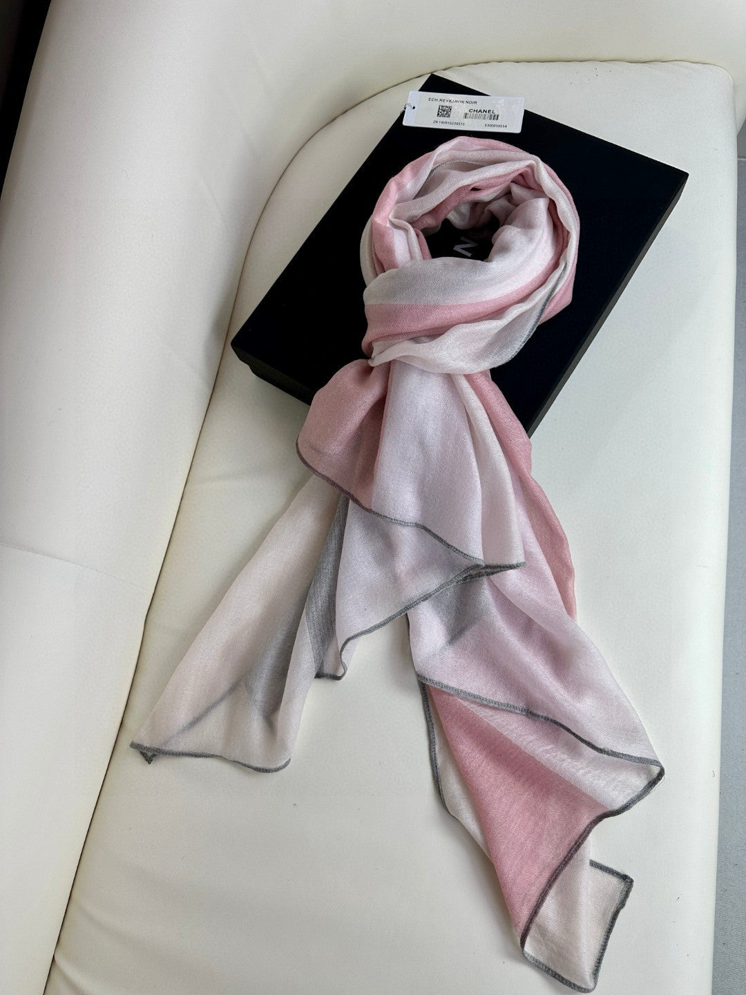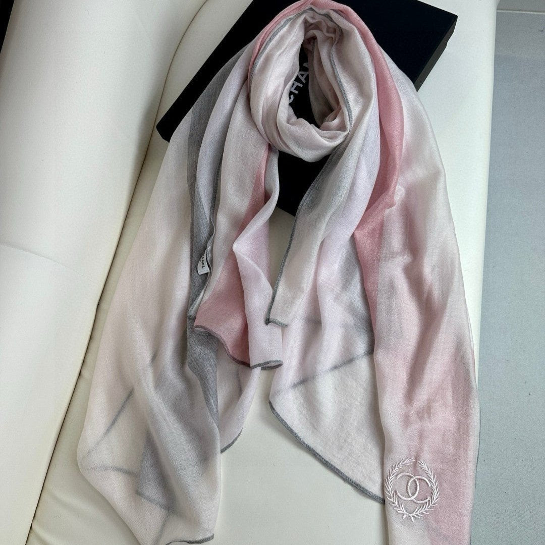CC Scarf 200 CM In Light Pink Mix Light Grey Beige Cashmere Silk 396448