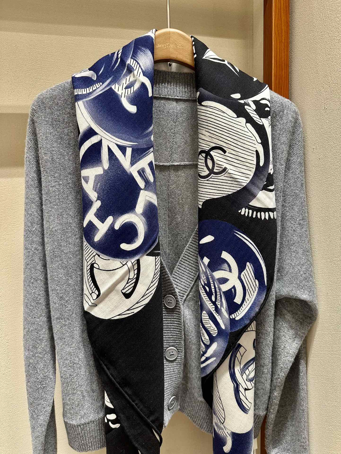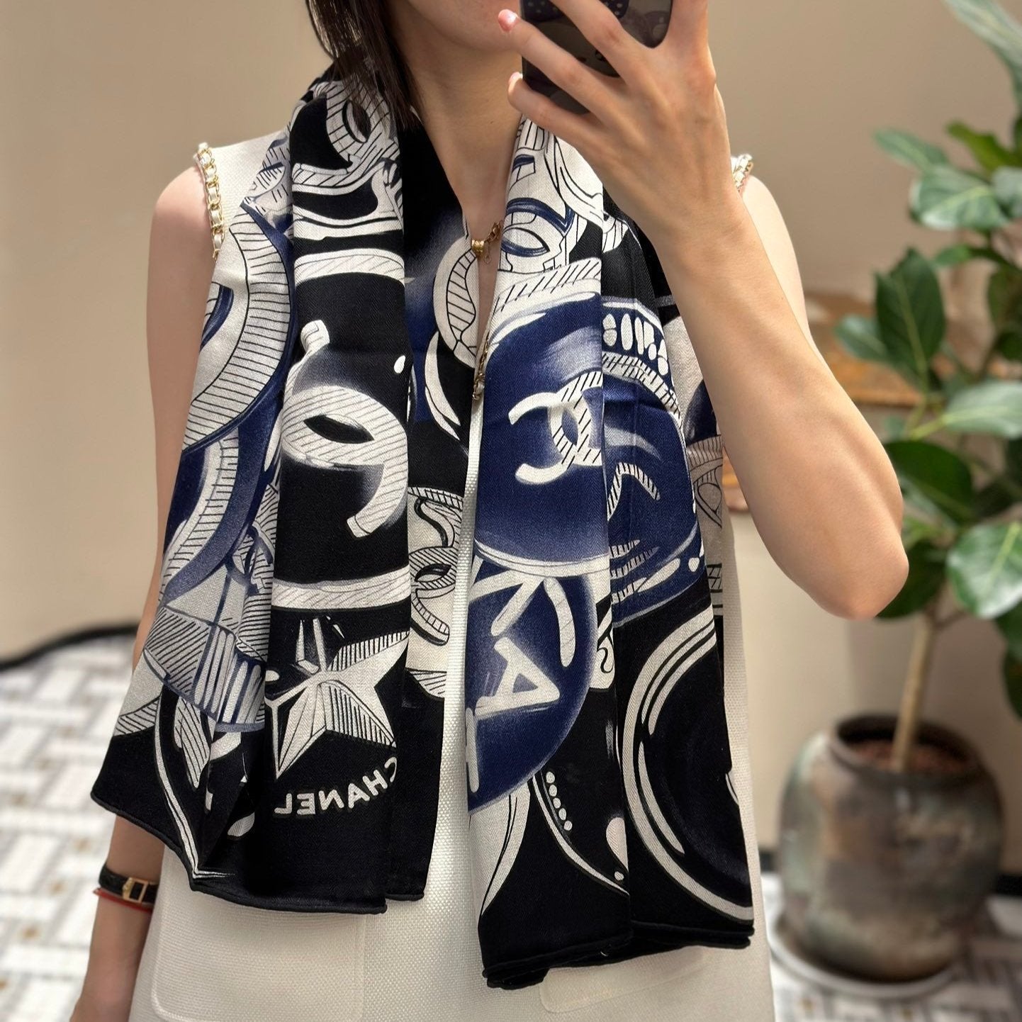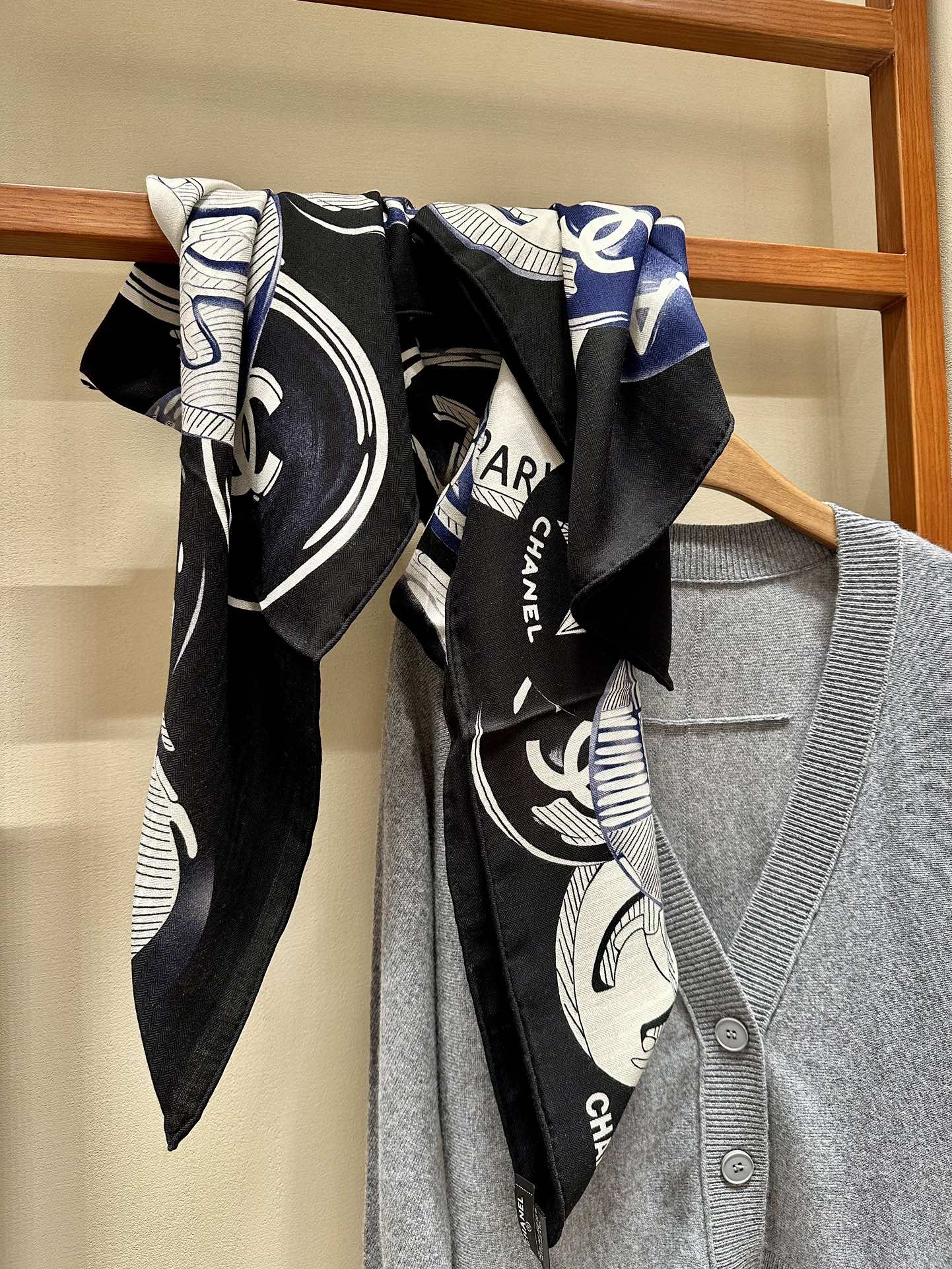 CC Square Scarf 140 CM In Black Colorful Cashmere And Silk 418150