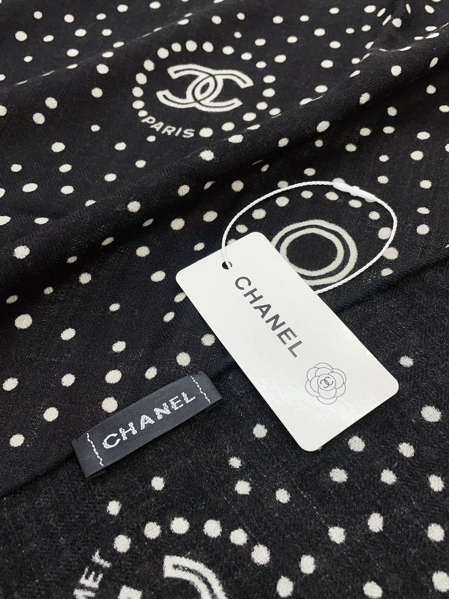 CC Square Scarf 140 CM In Black Mix White Cashmere And Silk 398280