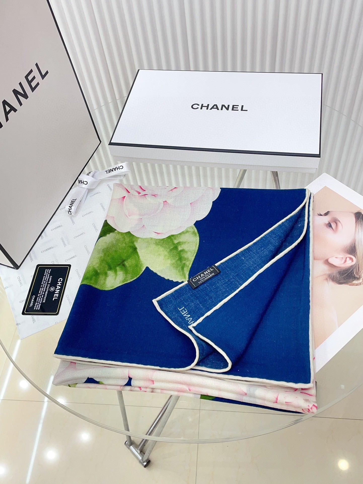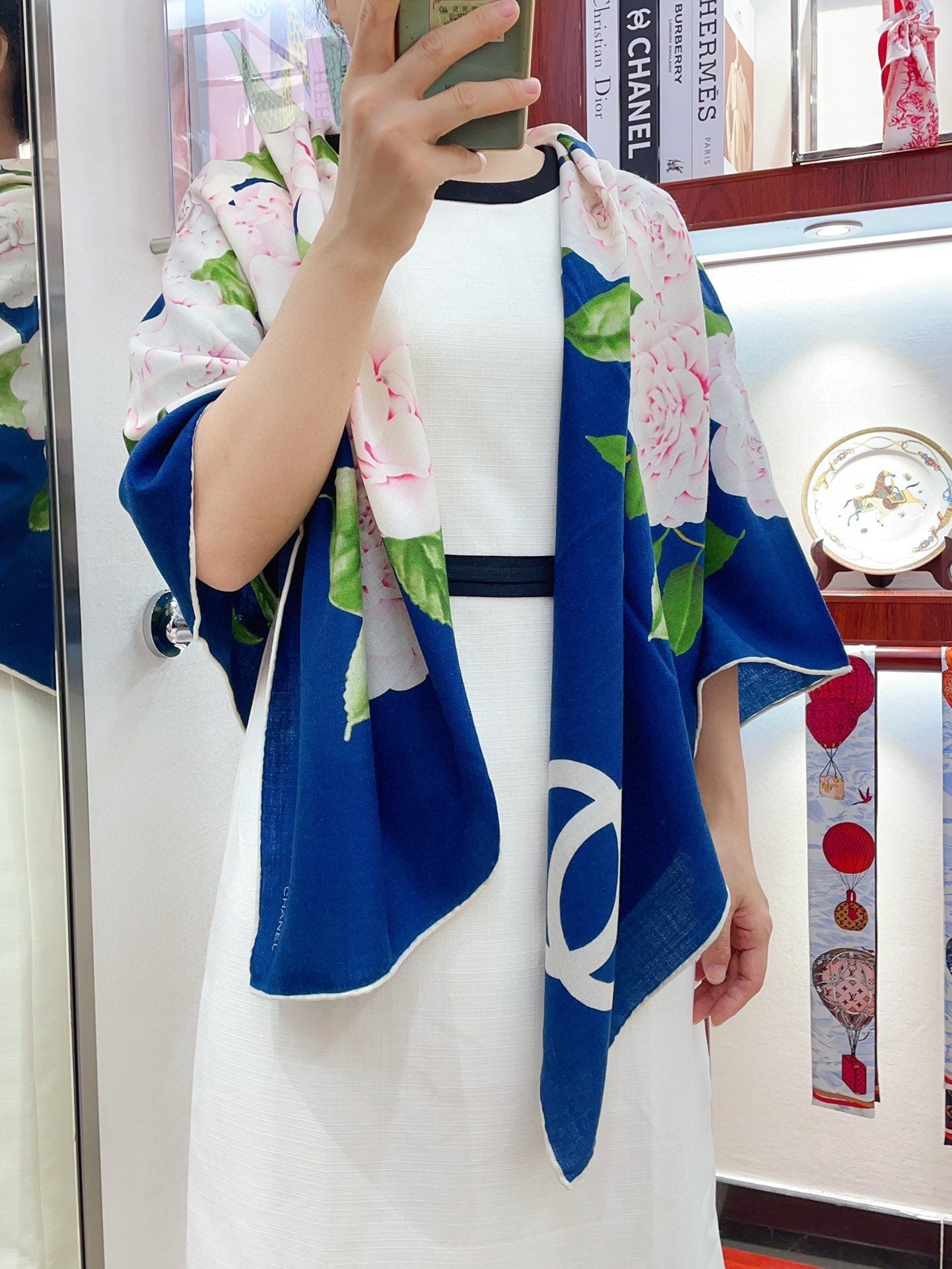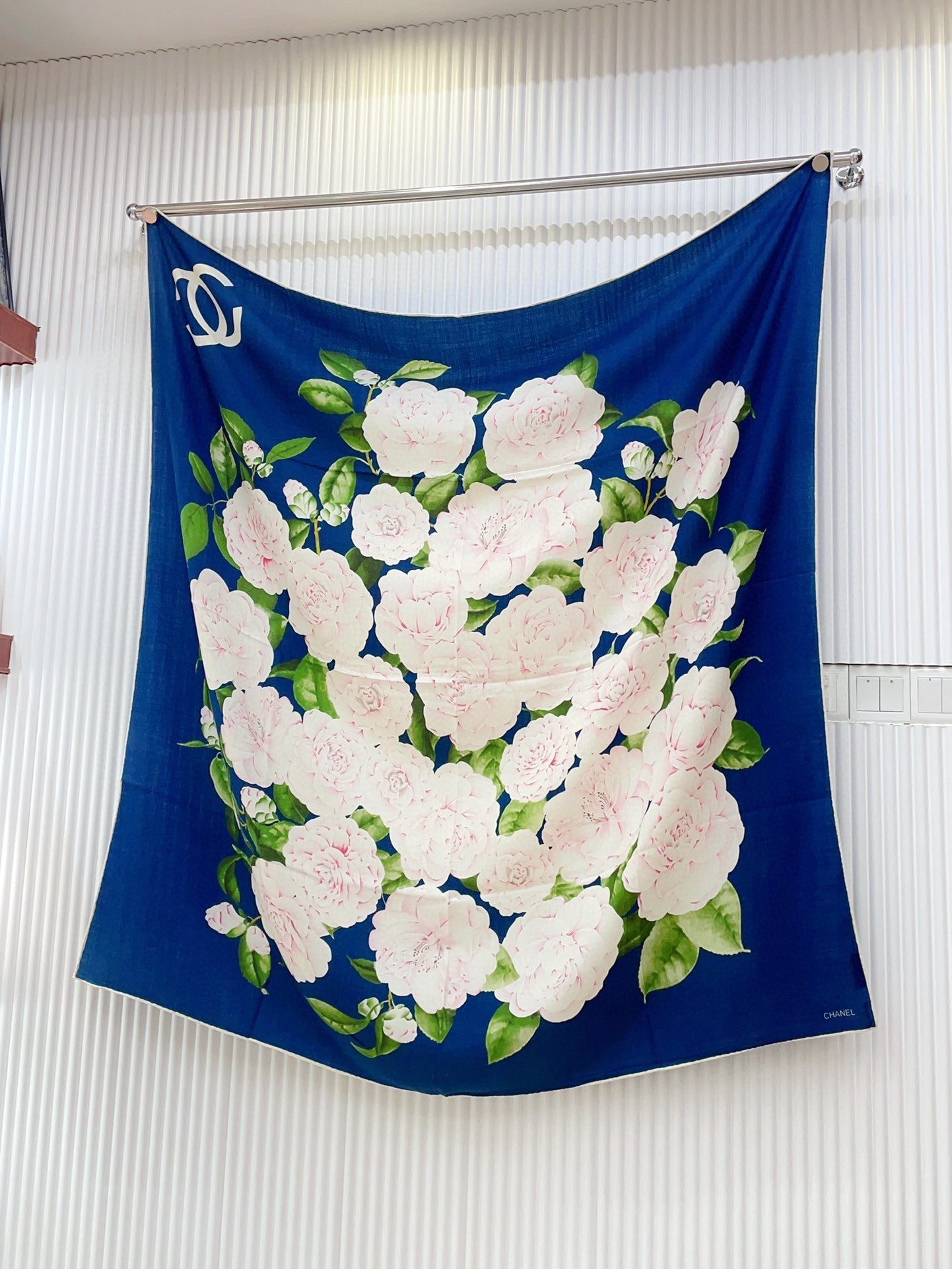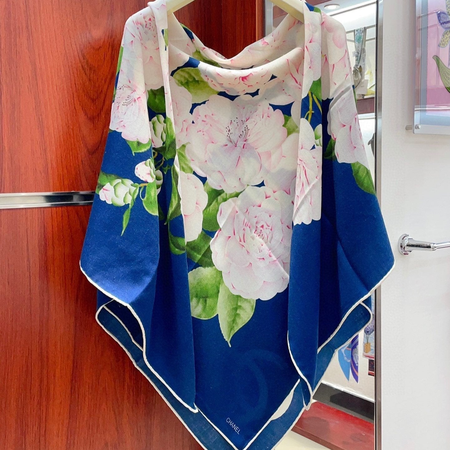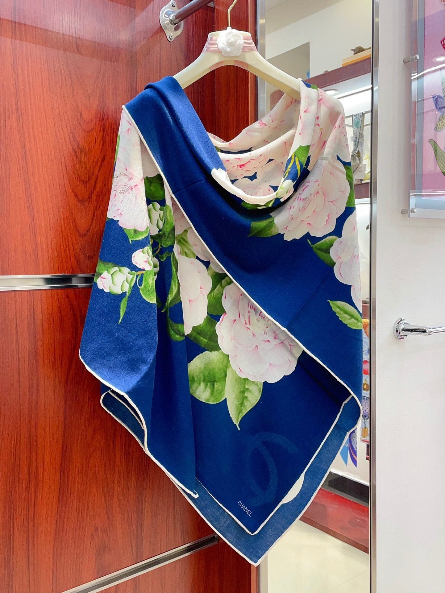 CC Square Scarf 140 CM In Blue Colorful Cashmere And Silk 418215