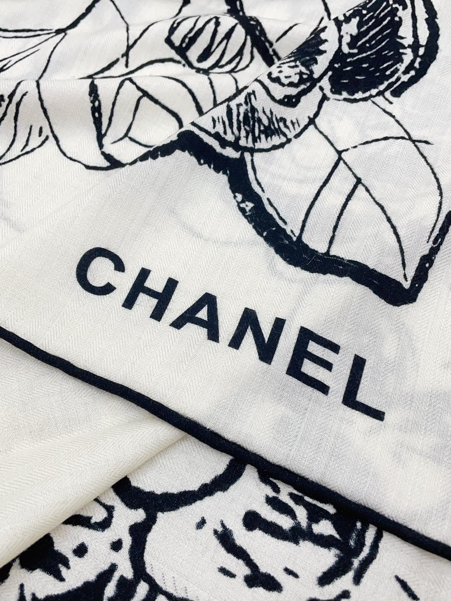 CC Square Scarf 140 CM In White Black Cashmere And Silk 416900