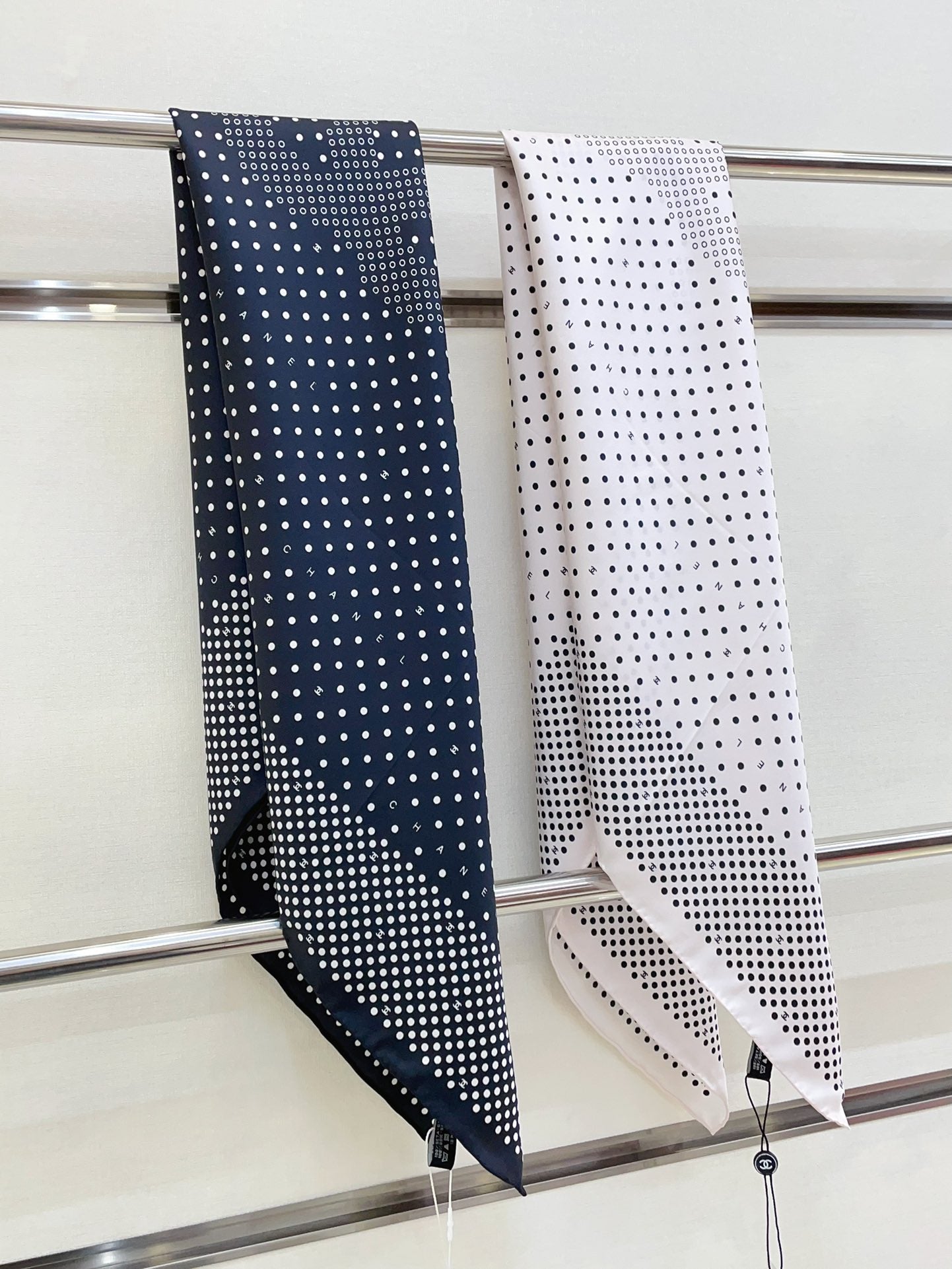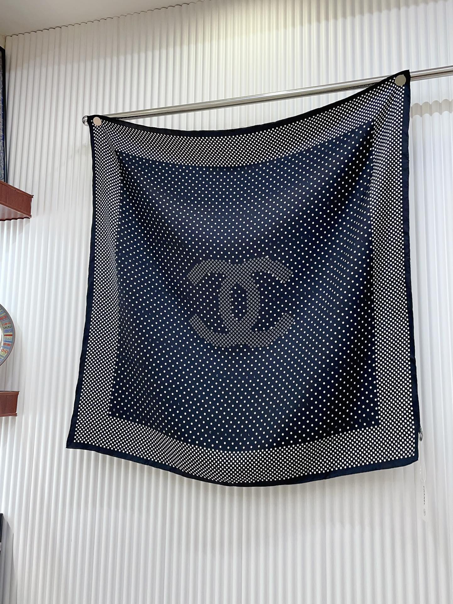 CC Square Scarf 90 CM In Black White Polka Dot Silk Twill 166291