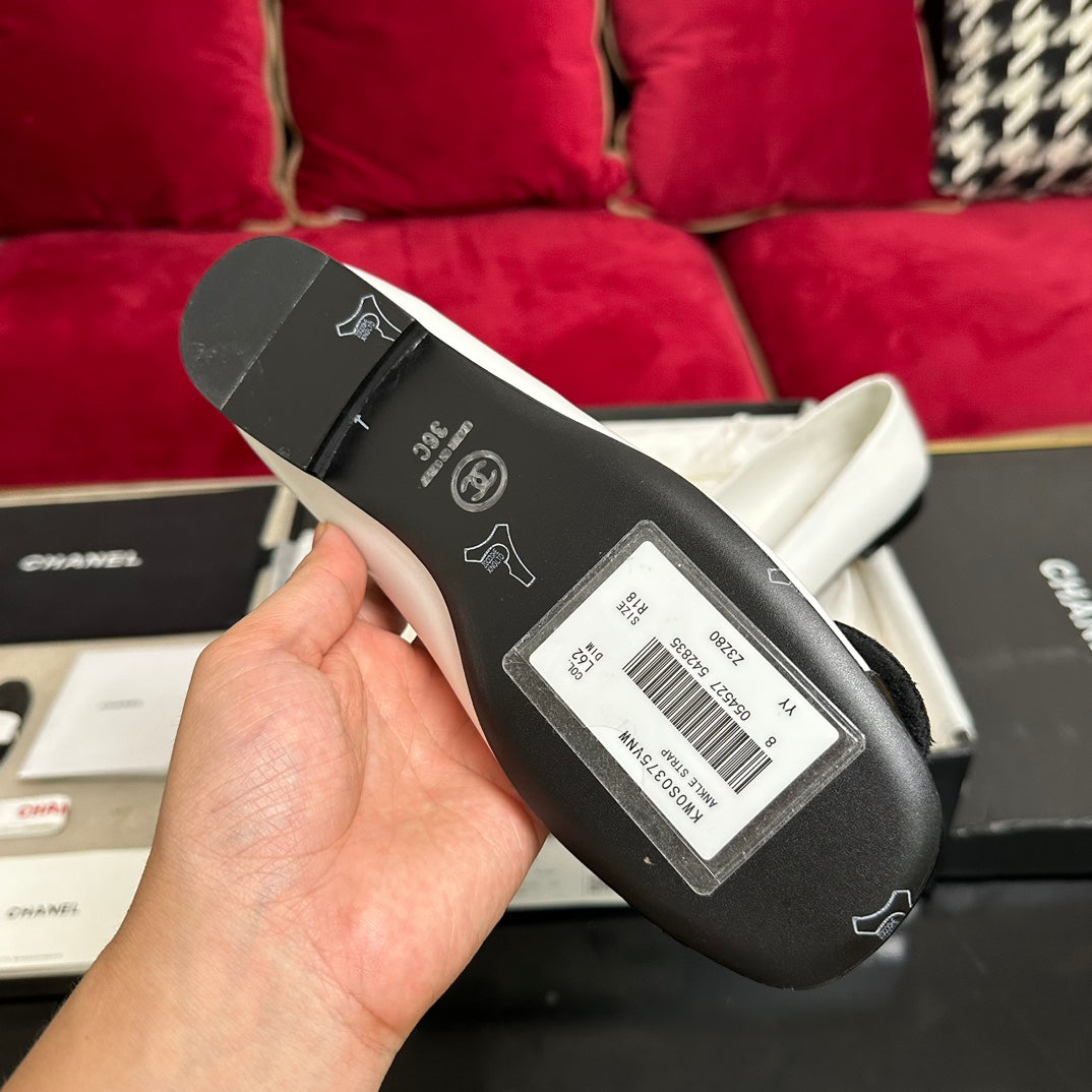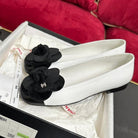 ballet flat black flower white calfskin